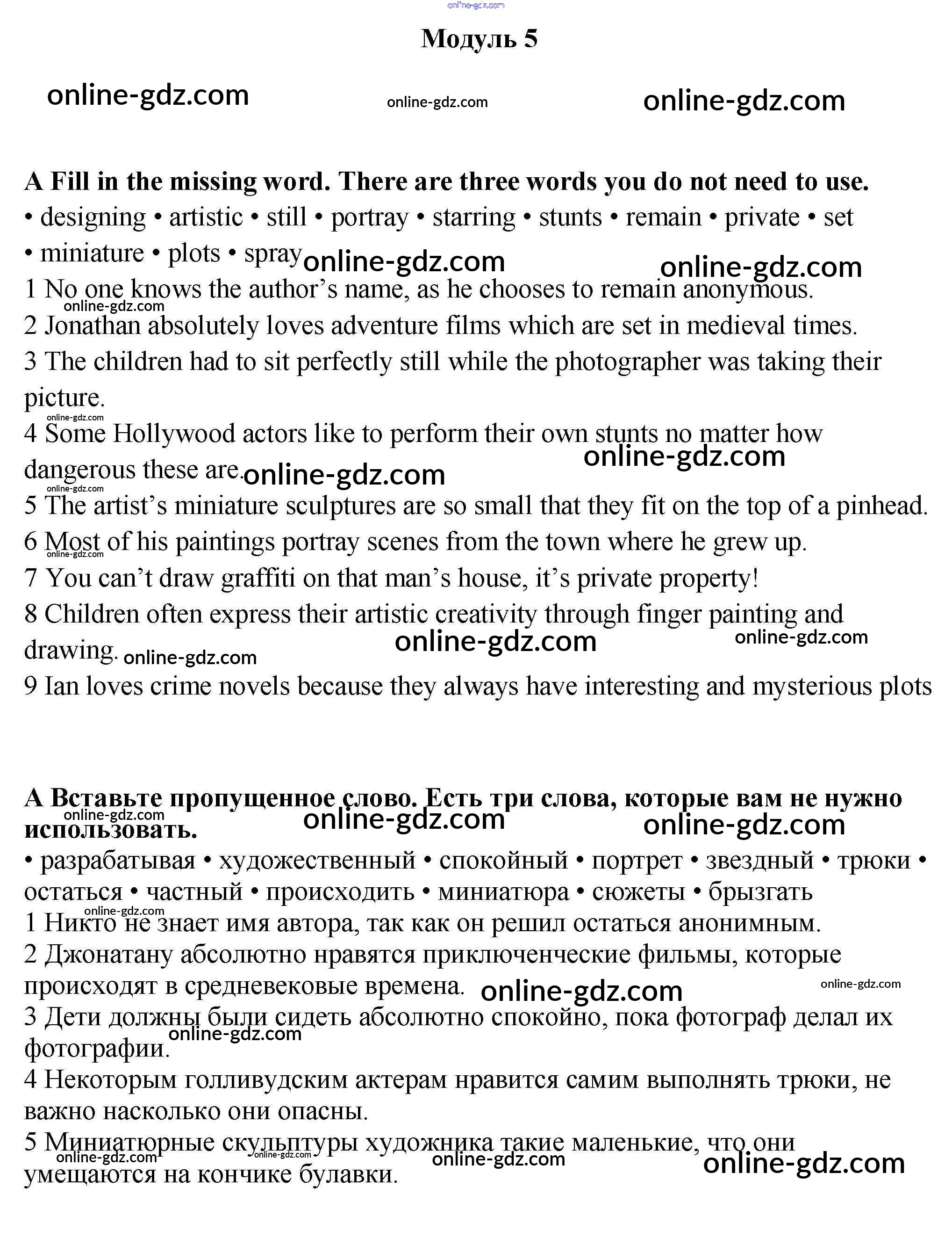 Готовые домашние задания по Английскому языку за 9 класс Контрольные задания Ваулина, Дули Spotlight 2018 - Модуль 5 A