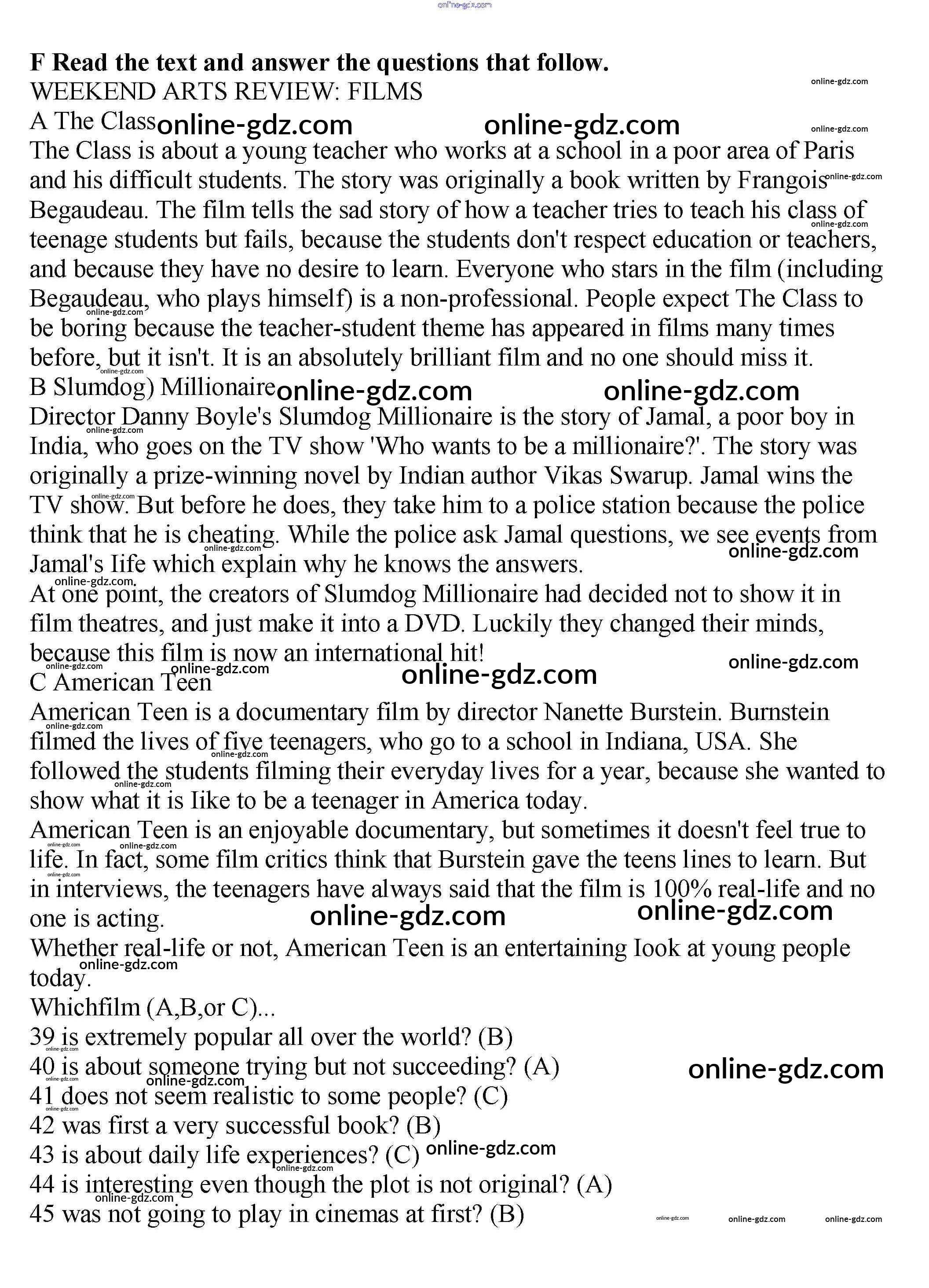 Готовые домашние задания по Английскому языку за 9 класс Контрольные задания Ваулина, Дули Spotlight 2018 - Модуль 5 F