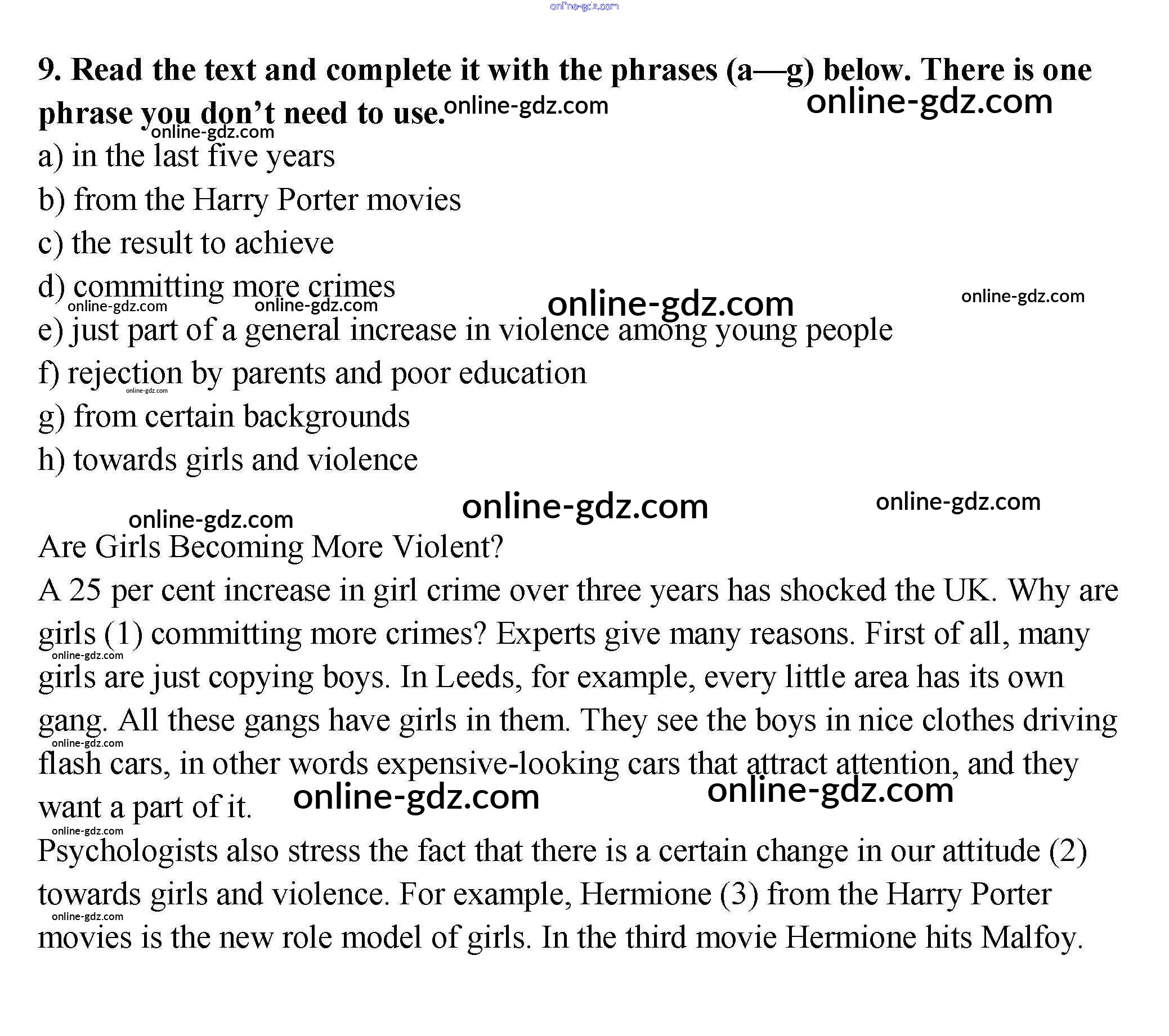 Готовые домашние задания по Английскому языку за 9 класс Рабочая тетрадь Афанасьева, Михеева Новый курс 2014 - Unit 4. Teenagers 9