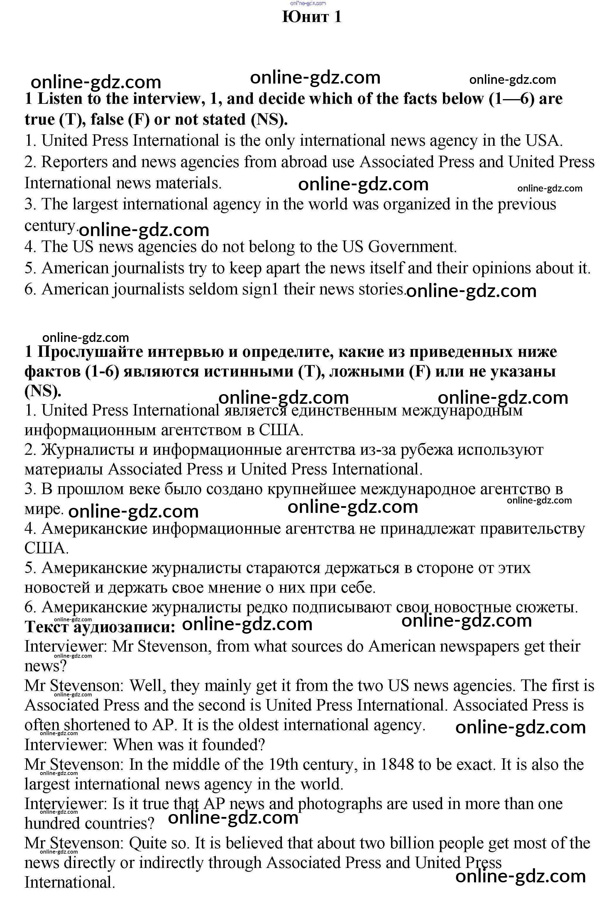 Готовые домашние задания по Английскому языку за 9 класс Рабочая тетрадь Афанасьева, Михеева Rainbow 2016 - Unit 1. Mass Media: Radio, Television, the Internet. Pages 4-29 1