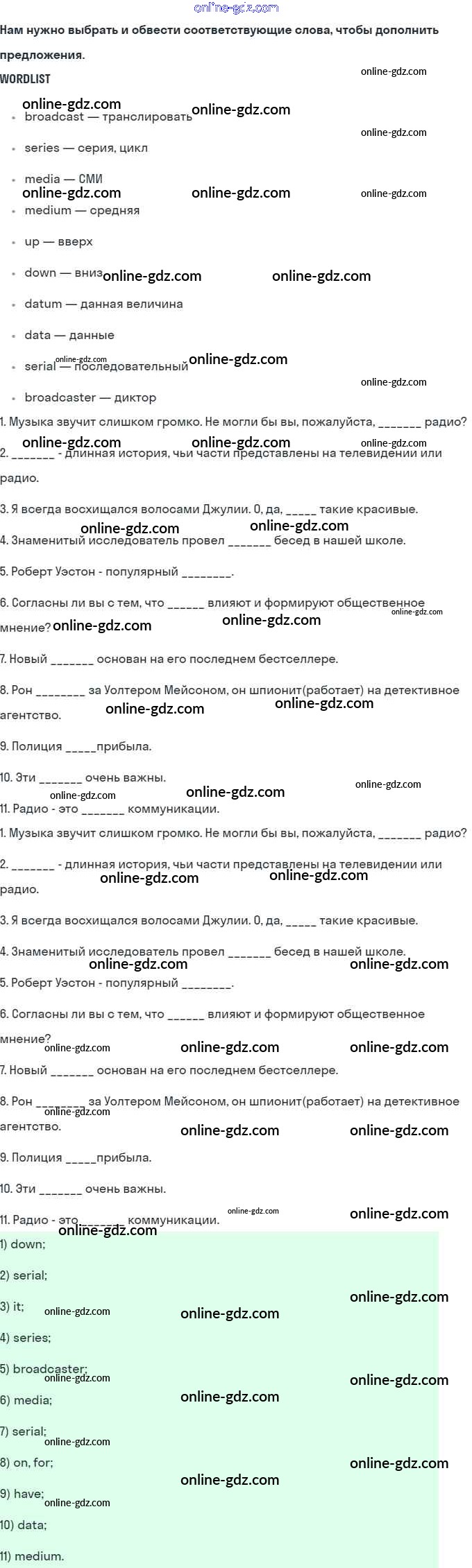 Готовые домашние задания по Английскому языку за 9 класс Рабочая тетрадь Афанасьева, Михеева Rainbow 2016 - Unit 1. Mass Media: Radio, Television, the Internet. Pages 4-29 17