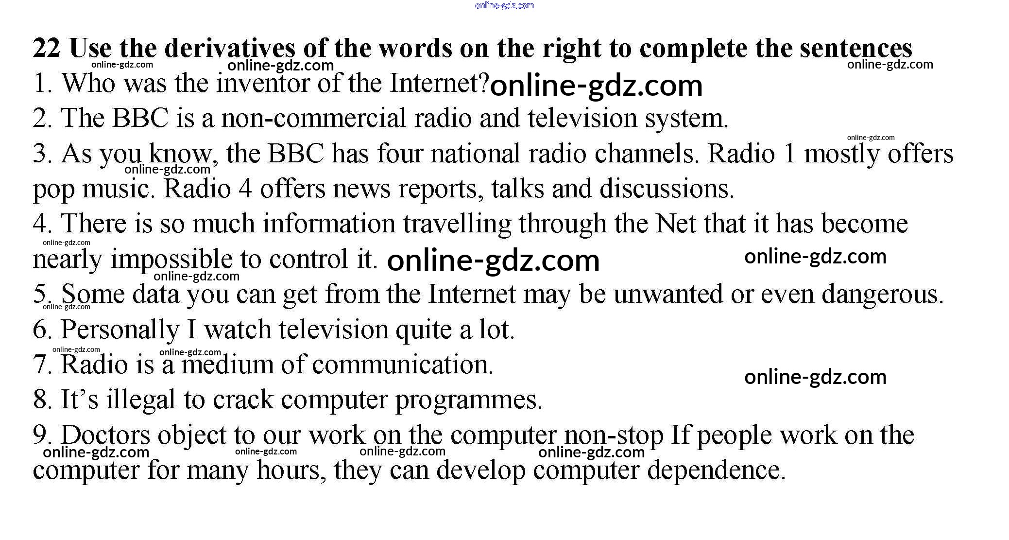 Готовые домашние задания по Английскому языку за 9 класс Рабочая тетрадь Афанасьева, Михеева Rainbow 2016 - Unit 1. Mass Media: Radio, Television, the Internet. Pages 4-29 22