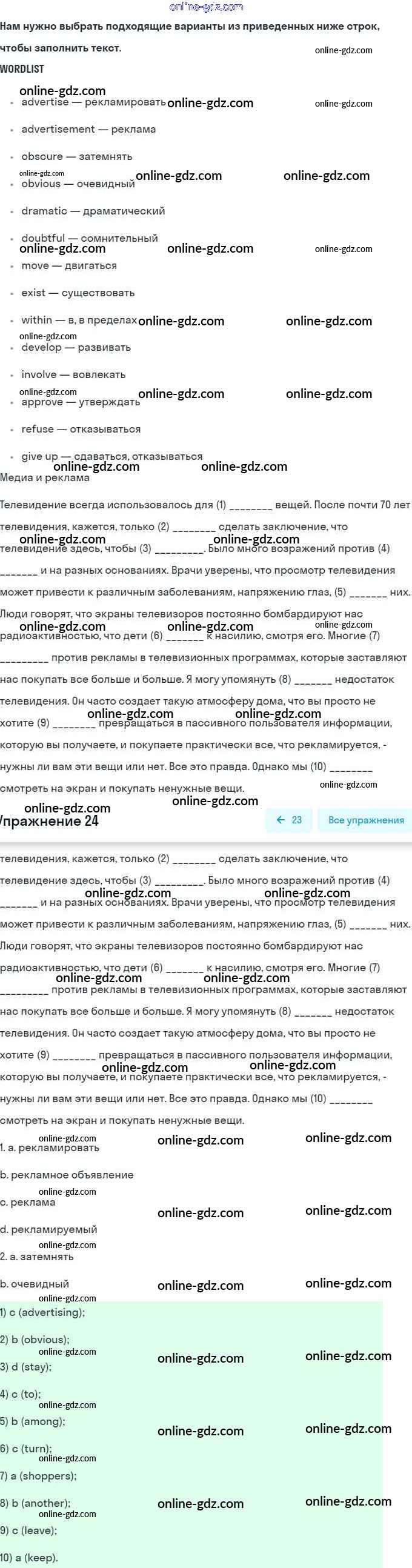 Готовые домашние задания по Английскому языку за 9 класс Рабочая тетрадь Афанасьева, Михеева Rainbow 2016 - Unit 1. Mass Media: Radio, Television, the Internet. Pages 4-29 24