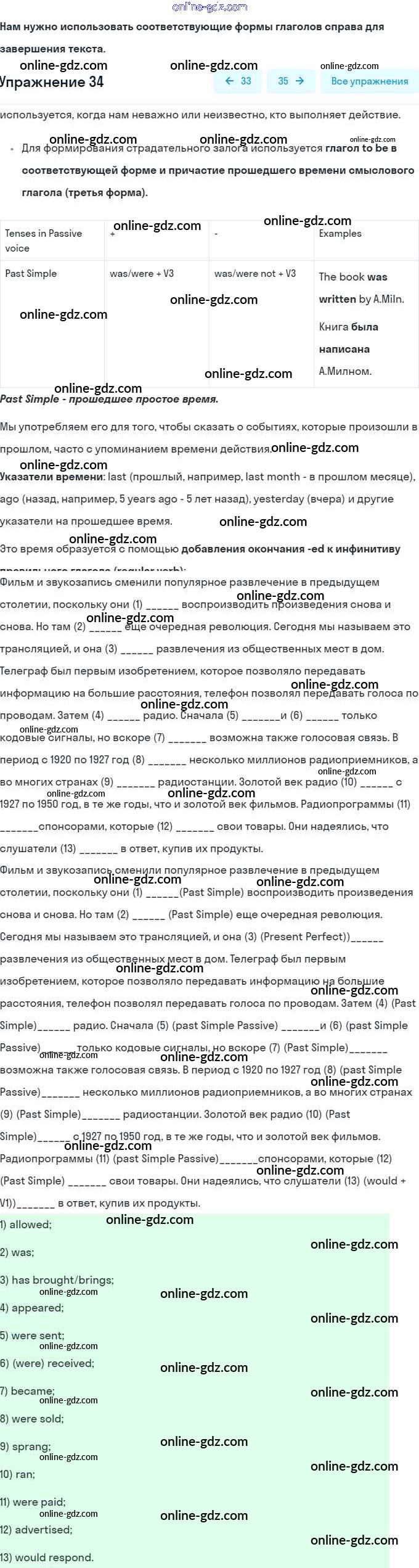 Готовые домашние задания по Английскому языку за 9 класс Рабочая тетрадь Афанасьева, Михеева Rainbow 2016 - Unit 1. Mass Media: Radio, Television, the Internet. Pages 4-29 34