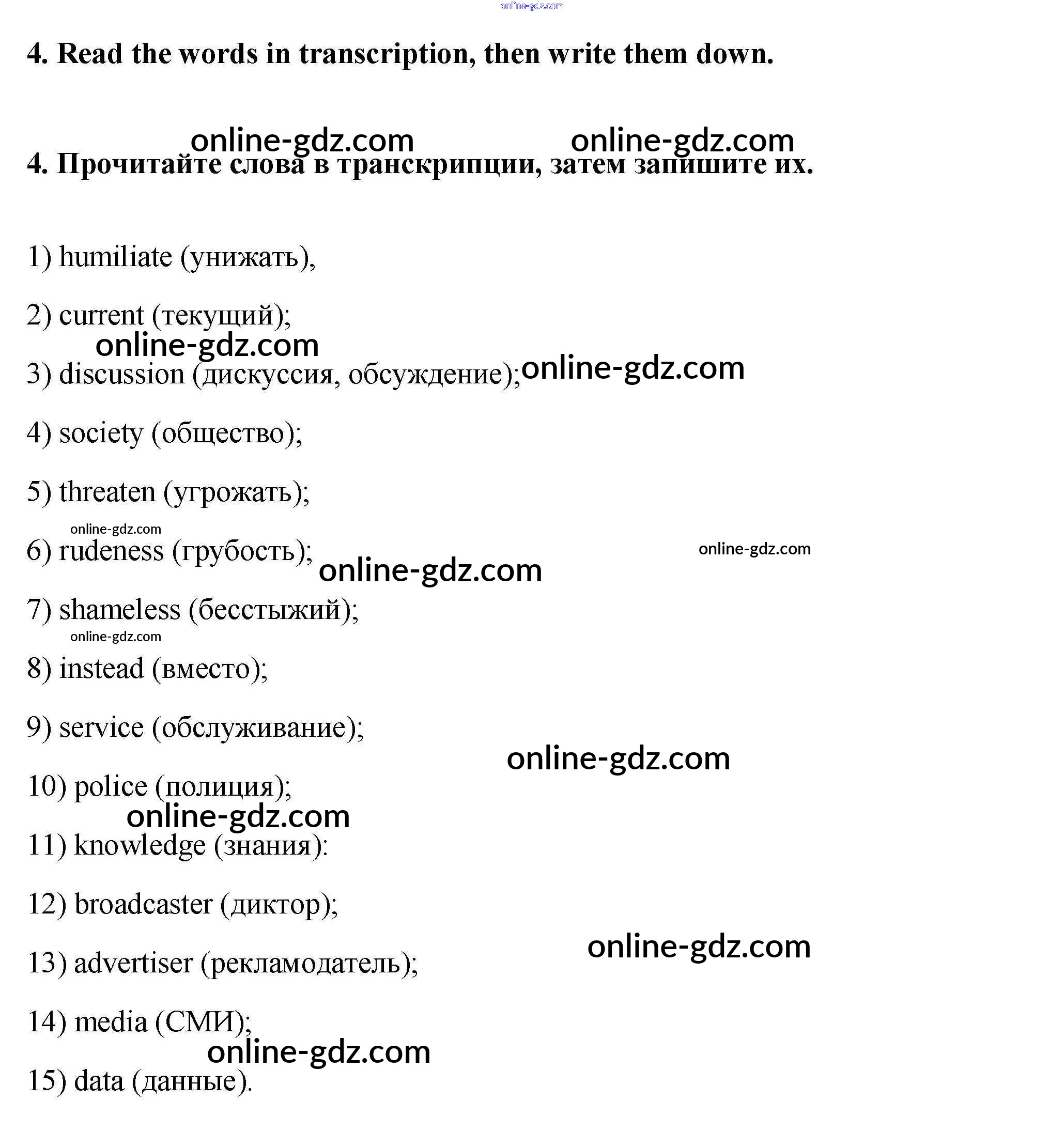 Готовые домашние задания по Английскому языку за 9 класс Рабочая тетрадь Афанасьева, Михеева Rainbow 2016 - Unit 1. Mass Media: Radio, Television, the Internet. Pages 4-29 4