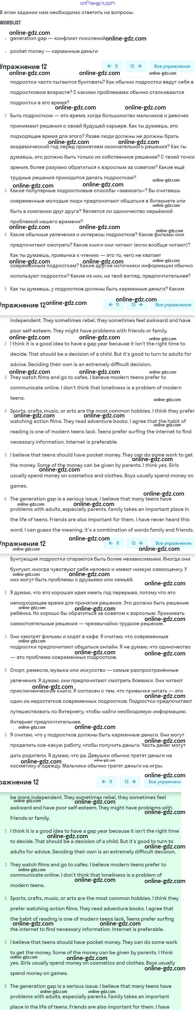 Готовые домашние задания по Английскому языку за 9 класс Рабочая тетрадь Афанасьева, Михеева Rainbow 2016 - Unit 4. Being a Teenager. Pages 82-110 12