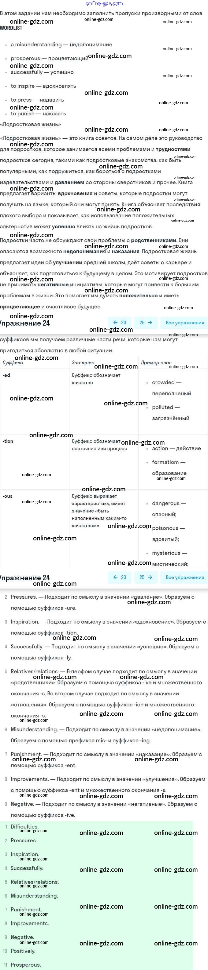 Готовые домашние задания по Английскому языку за 9 класс Рабочая тетрадь Афанасьева, Михеева Rainbow 2016 - Unit 4. Being a Teenager. Pages 82-110 24