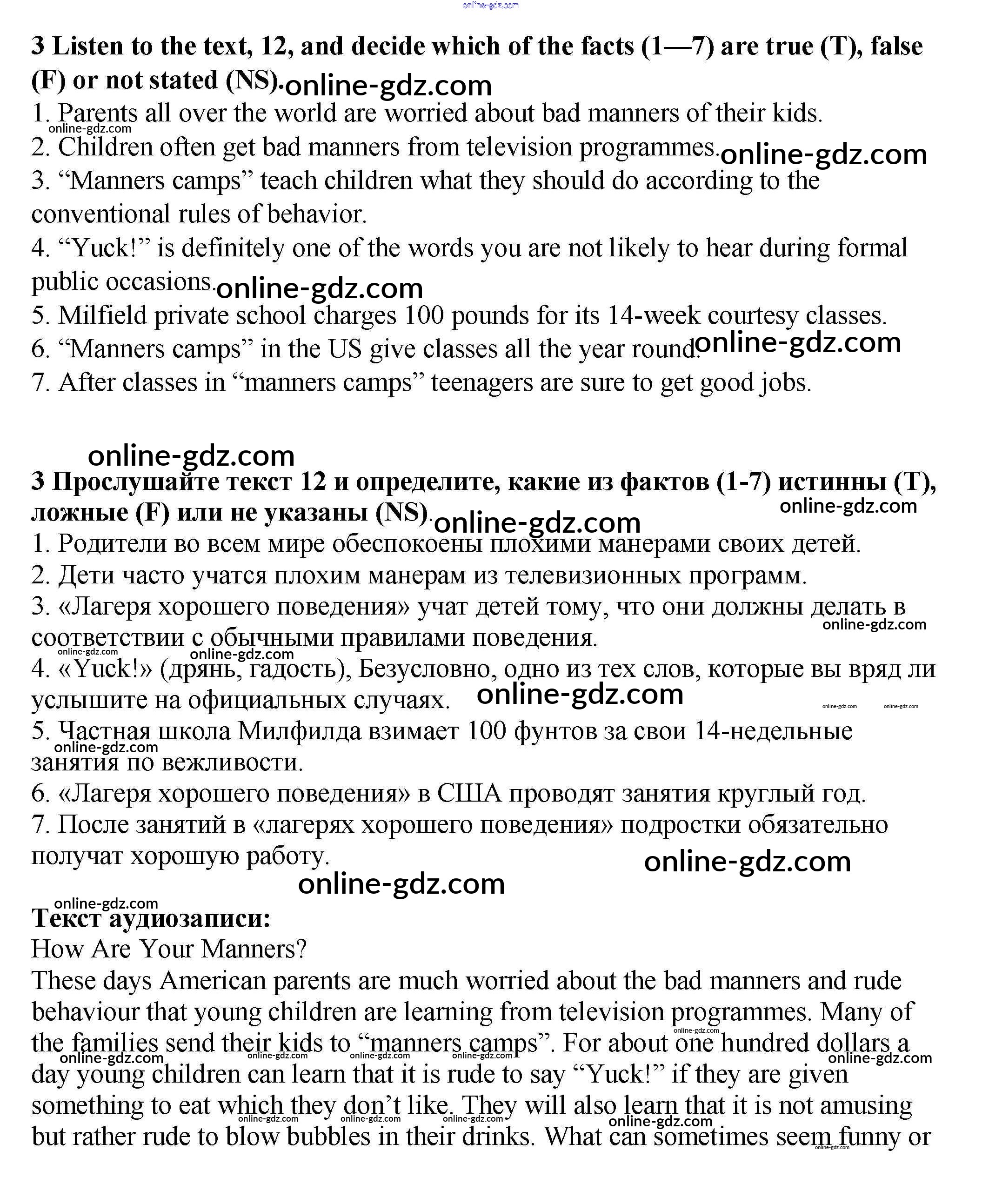 Готовые домашние задания по Английскому языку за 9 класс Рабочая тетрадь Афанасьева, Михеева Rainbow 2016 - Unit 4. Being a Teenager. Pages 82-110 3