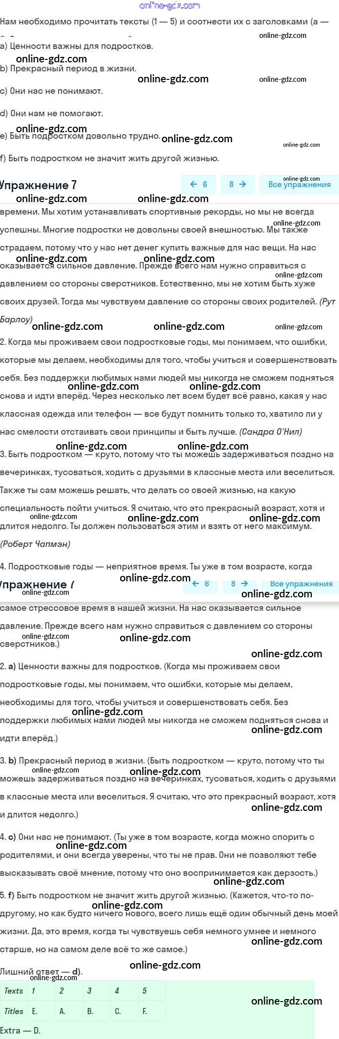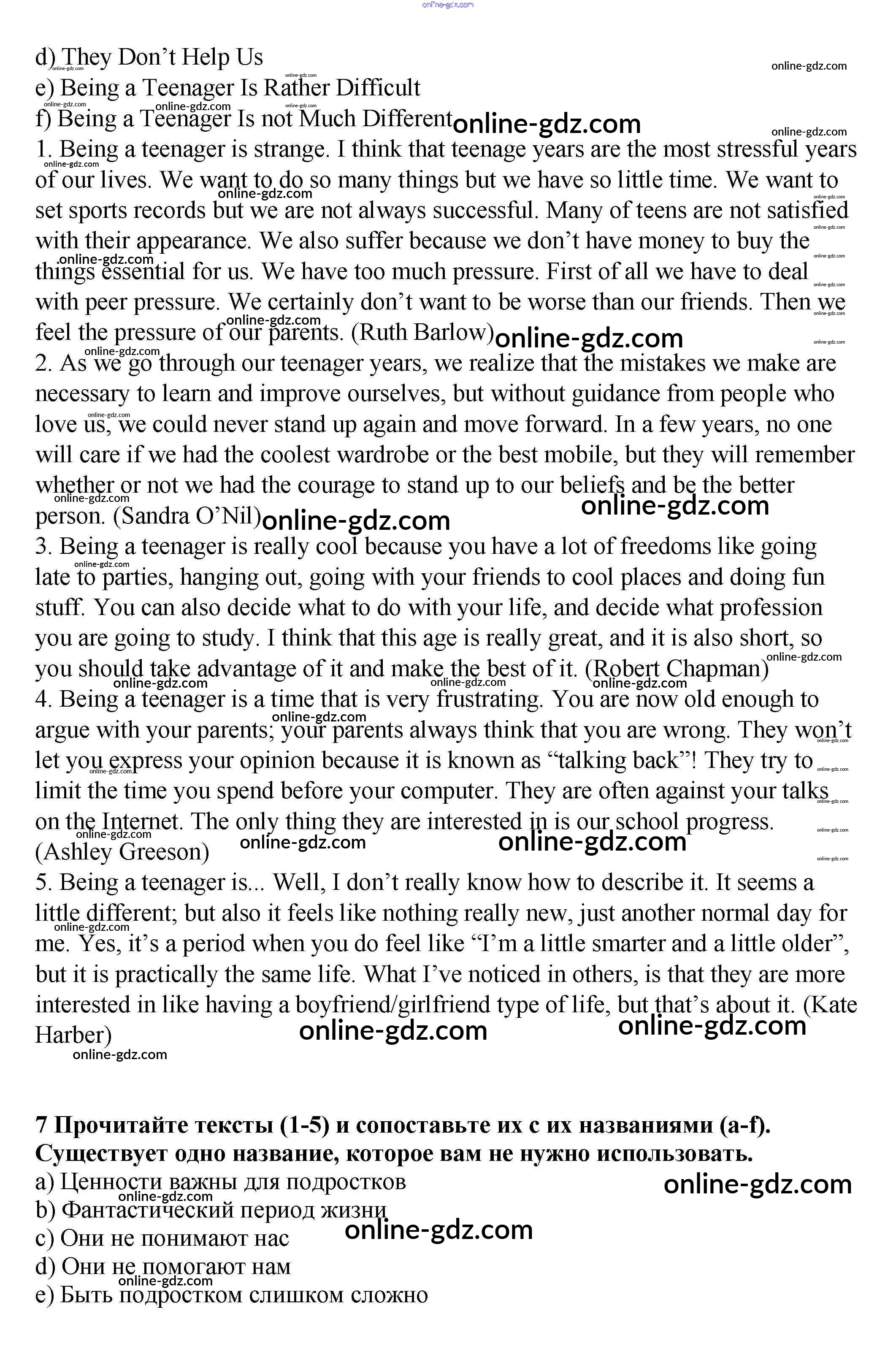 Готовые домашние задания по Английскому языку за 9 класс Рабочая тетрадь Афанасьева, Михеева Rainbow 2016 - Unit 4. Being a Teenager. Pages 82-110 7