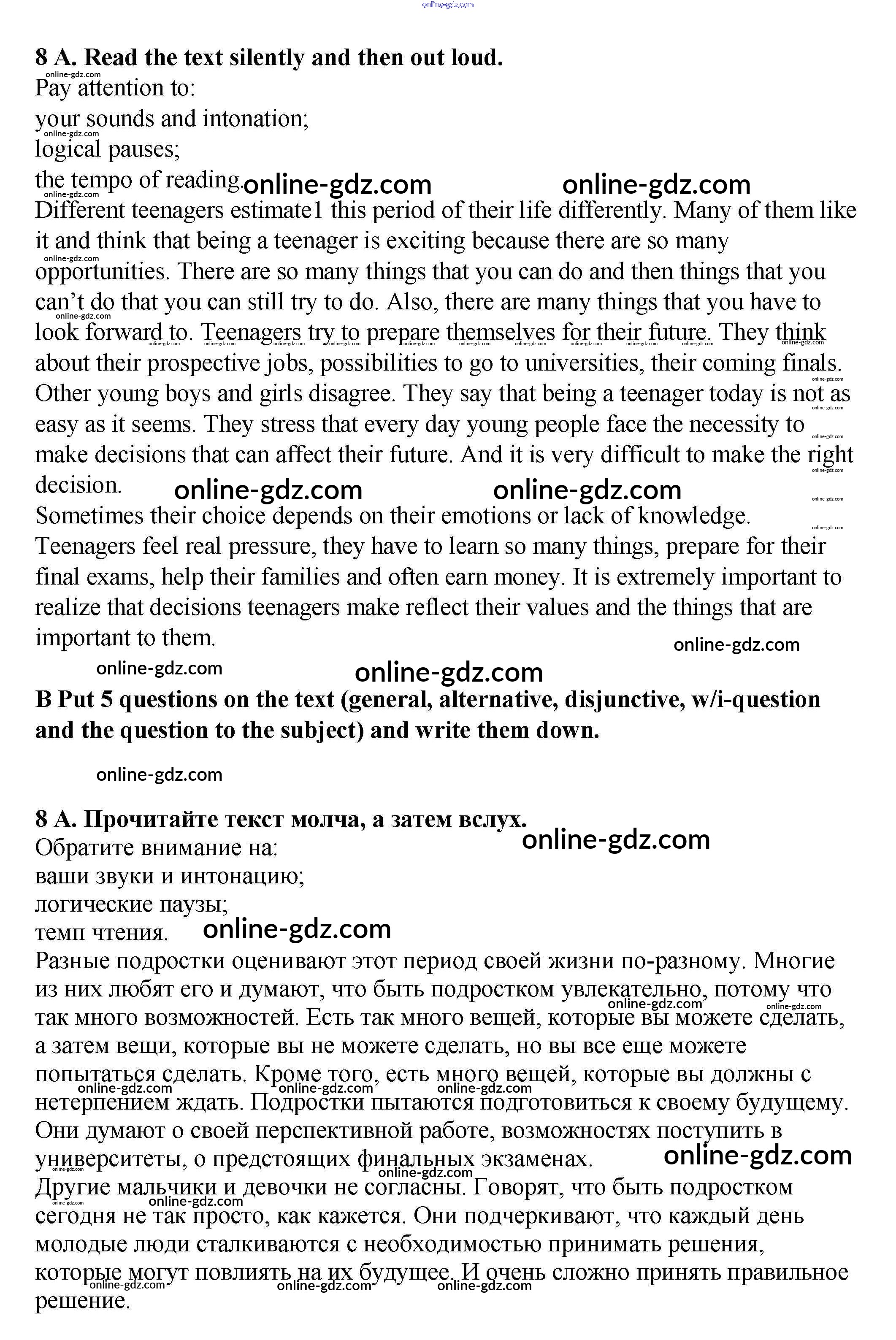 Готовые домашние задания по Английскому языку за 9 класс Рабочая тетрадь Афанасьева, Михеева Rainbow 2016 - Unit 4. Being a Teenager. Pages 82-110 8