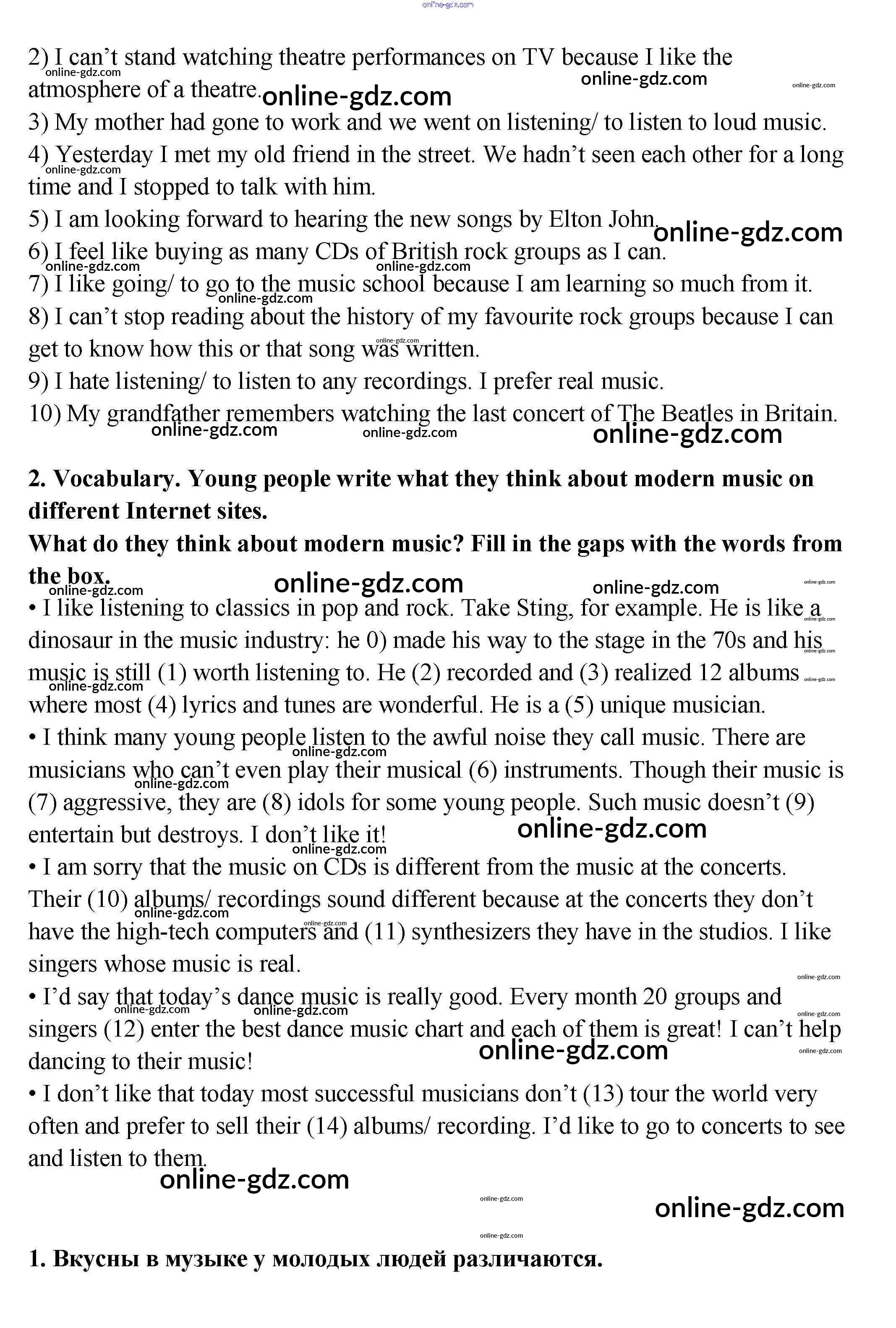Готовые домашние задания по Английскому языку за 9 класс Рабочая тетрадь Кузовлев, Перегудова УМК 2016 - Урок 2 Unit 2. Let the music begin.. 1