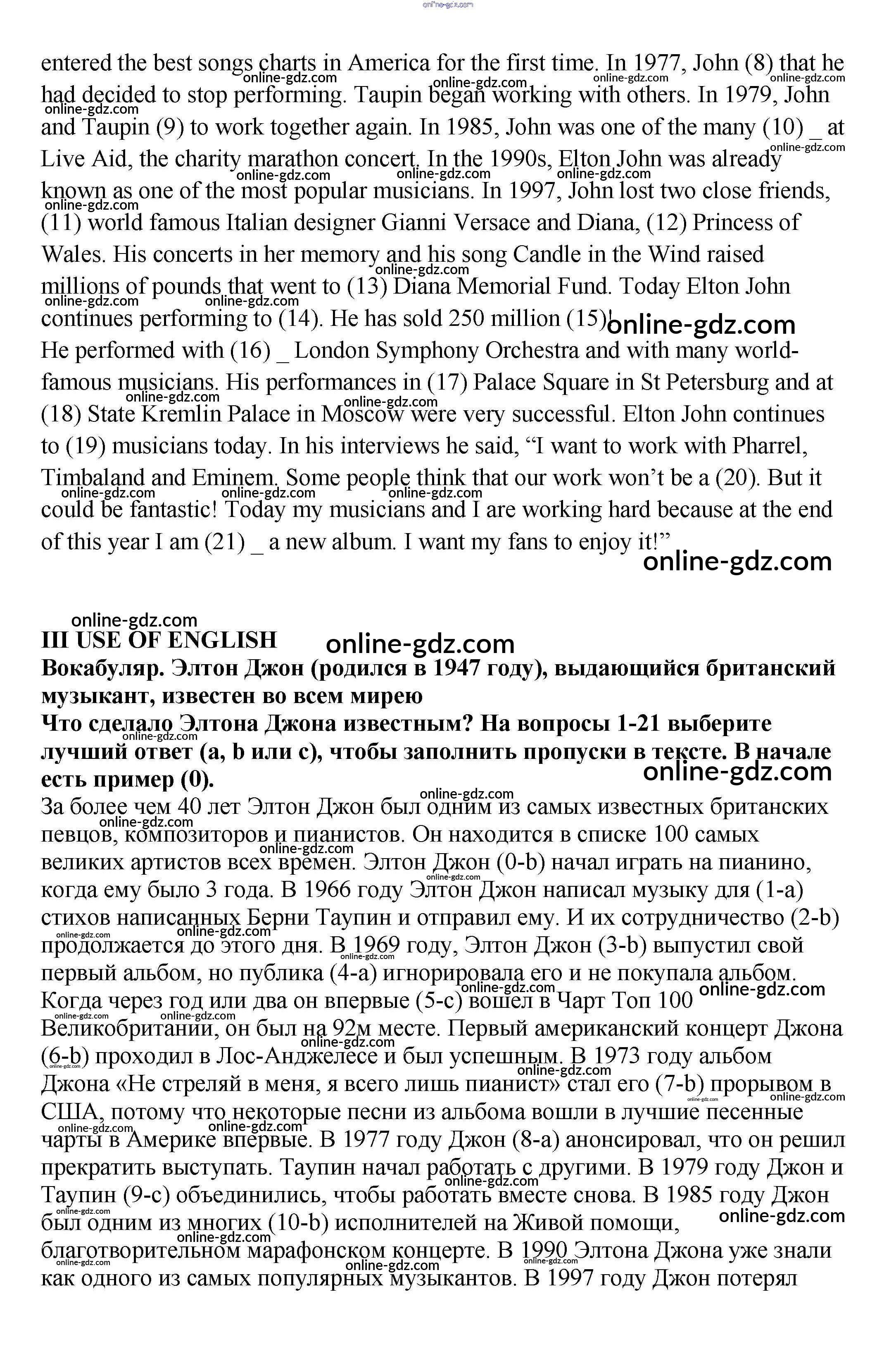 Готовые домашние задания по Английскому языку за 9 класс Рабочая тетрадь Кузовлев, Перегудова УМК 2016 - Test Unit 2. Let the music begin.. 3