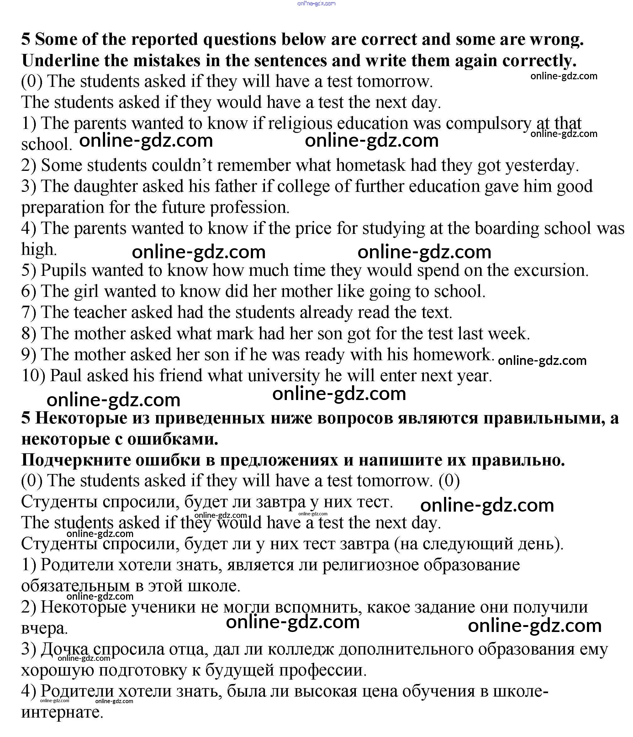 Готовые домашние задания по Английскому языку за 9 класс Рабочая тетрадь Кузовлев, Перегудова УМК 2016 - Consolidation Unit 4. What school do you go to? 5