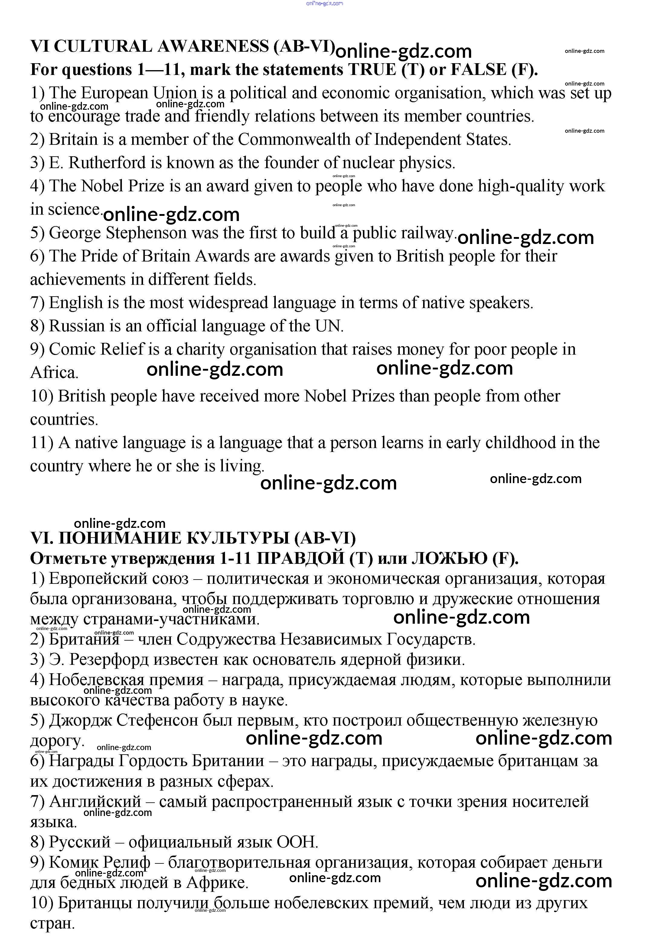 Готовые домашние задания по Английскому языку за 9 класс Рабочая тетрадь Кузовлев, Перегудова УМК 2016 - Test Unit 6. My country in the world? 6