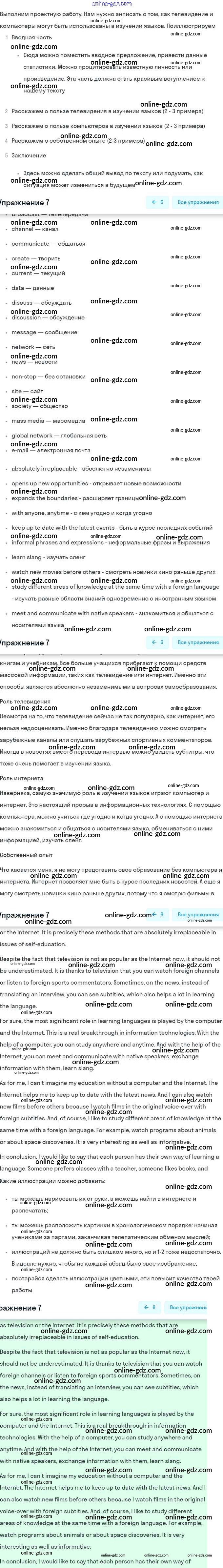 Готовые домашние задания по Английскому языку за 9 класс Учебник Афанасьева, Михеева Rainbow 2017 - Step 10 Unit 1. Mass Media: Radio, Television, the Internet 7