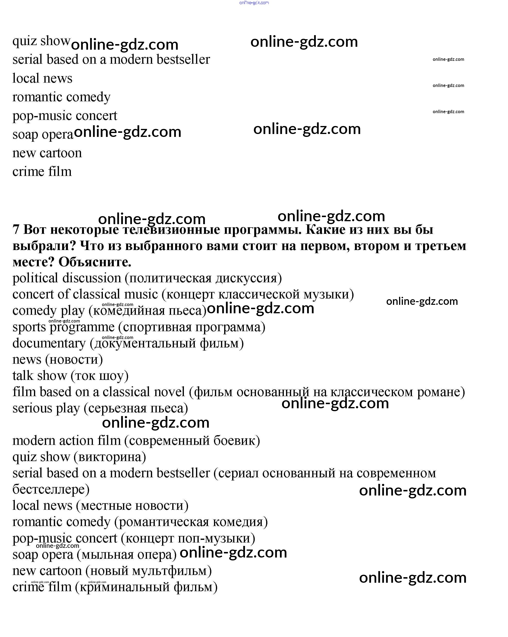 Готовые домашние задания по Английскому языку за 9 класс Учебник Афанасьева, Михеева Rainbow 2017 - Step 3 Unit 1. Mass Media: Radio, Television, the Internet 7