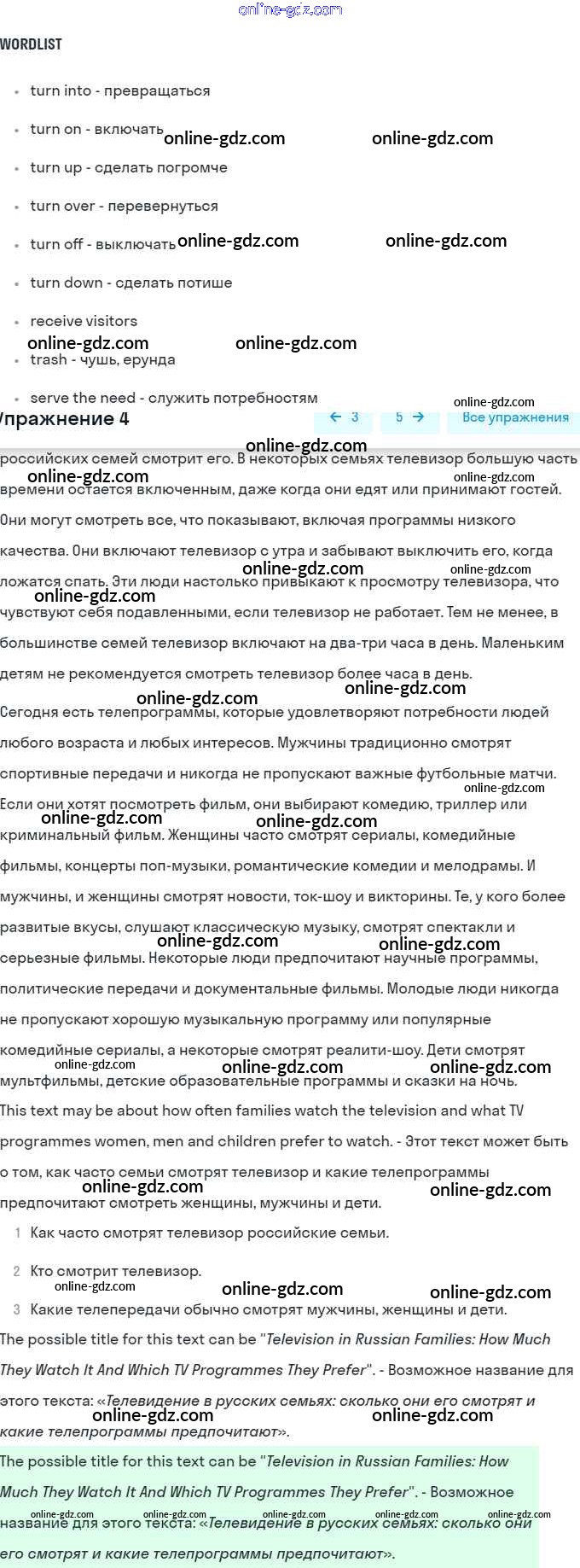 Готовые домашние задания по Английскому языку за 9 класс Учебник Афанасьева, Михеева Rainbow 2017 - Step 4 Unit 1. Mass Media: Radio, Television, the Internet 4