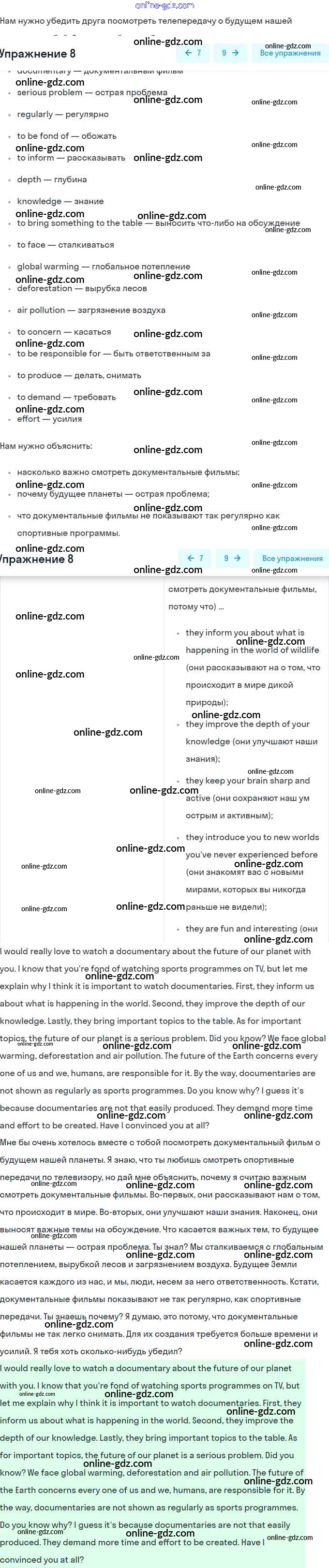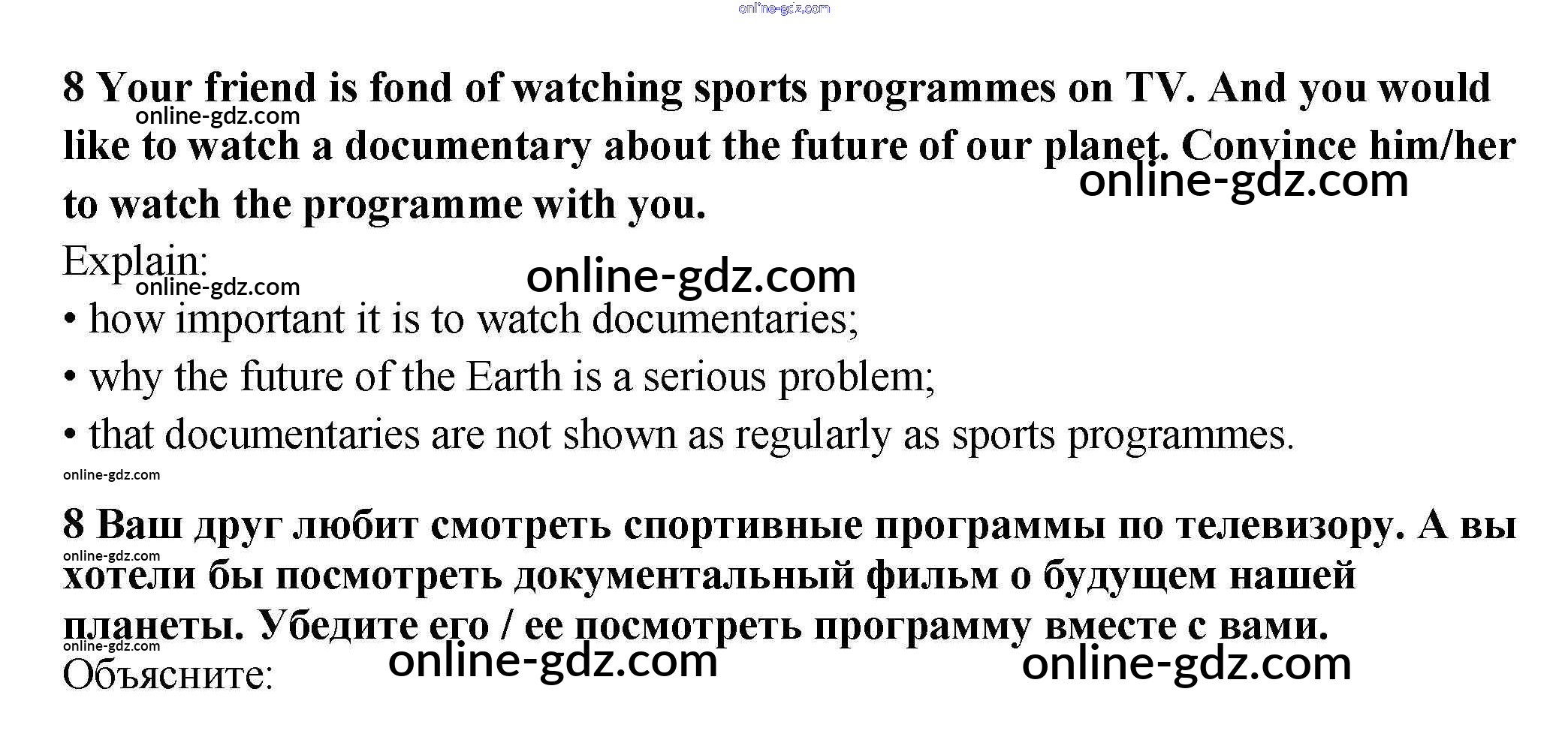 Готовые домашние задания по Английскому языку за 9 класс Учебник Афанасьева, Михеева Rainbow 2017 - Step 5 Unit 1. Mass Media: Radio, Television, the Internet 8