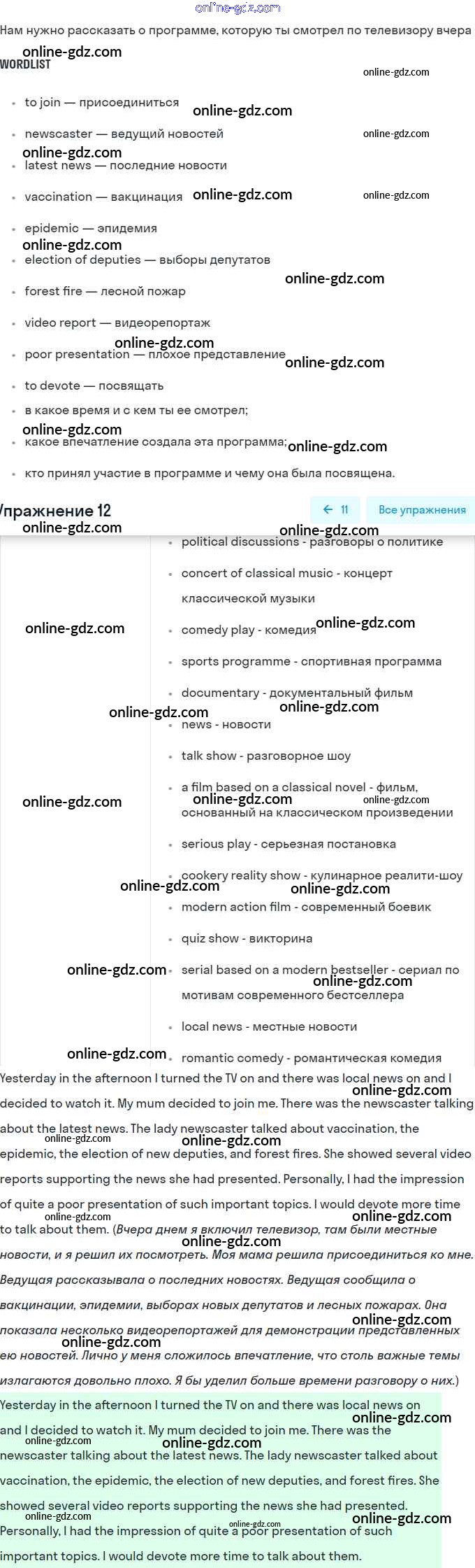 Готовые домашние задания по Английскому языку за 9 класс Учебник Афанасьева, Михеева Rainbow 2017 - Step 6 Unit 1. Mass Media: Radio, Television, the Internet 12