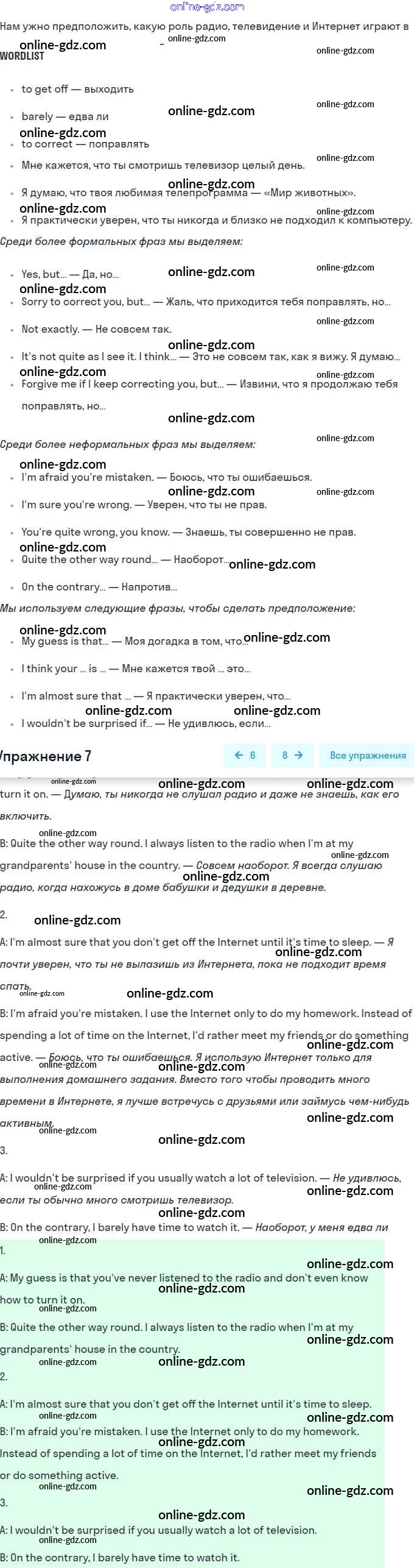 Готовые домашние задания по Английскому языку за 9 класс Учебник Афанасьева, Михеева Rainbow 2017 - Step 7 Unit 1. Mass Media: Radio, Television, the Internet 7