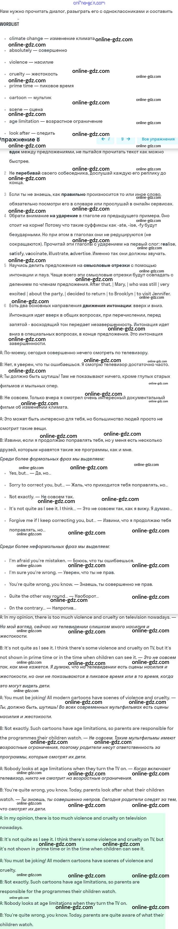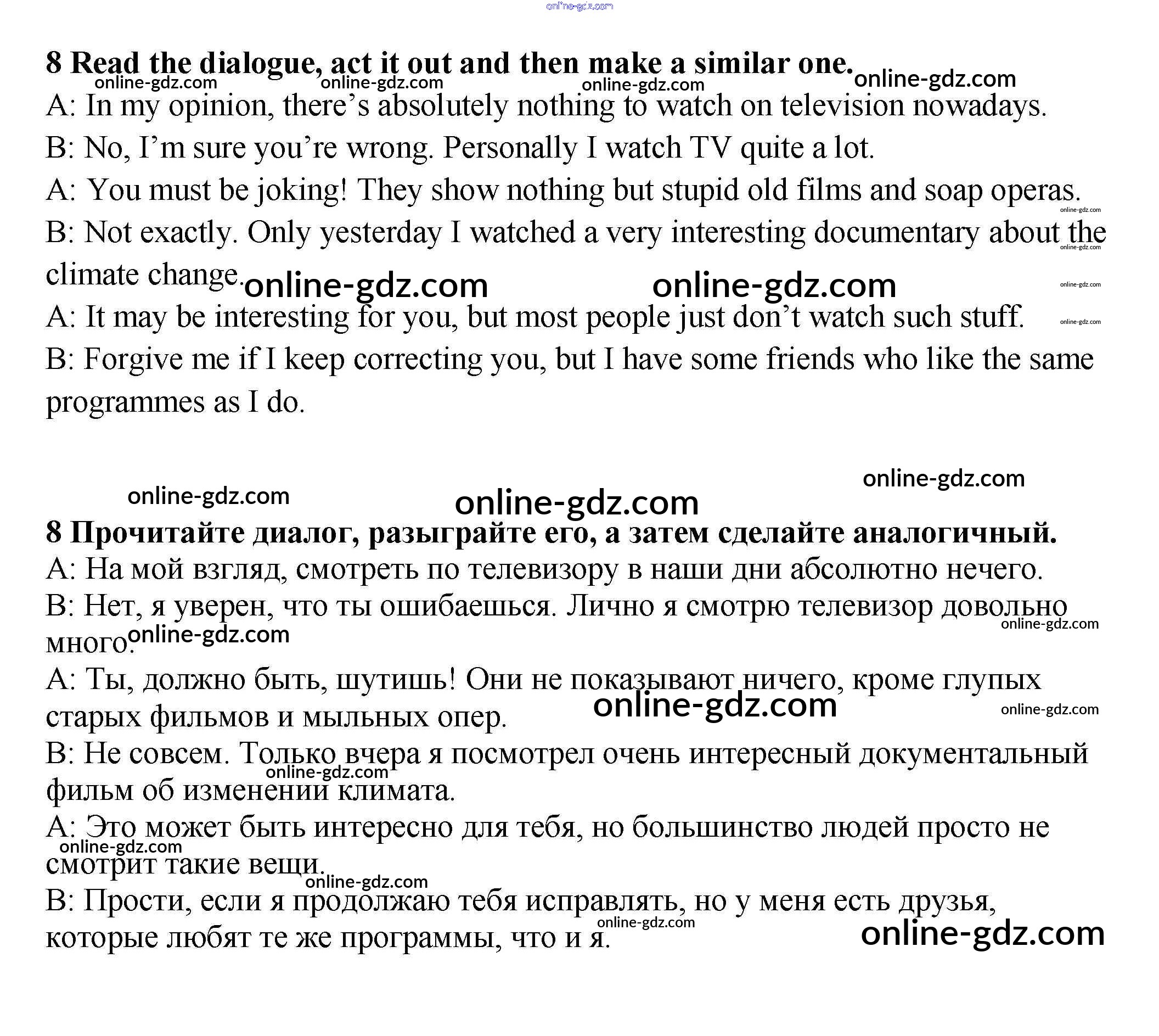 Готовые домашние задания по Английскому языку за 9 класс Учебник Афанасьева, Михеева Rainbow 2017 - Step 7 Unit 1. Mass Media: Radio, Television, the Internet 8