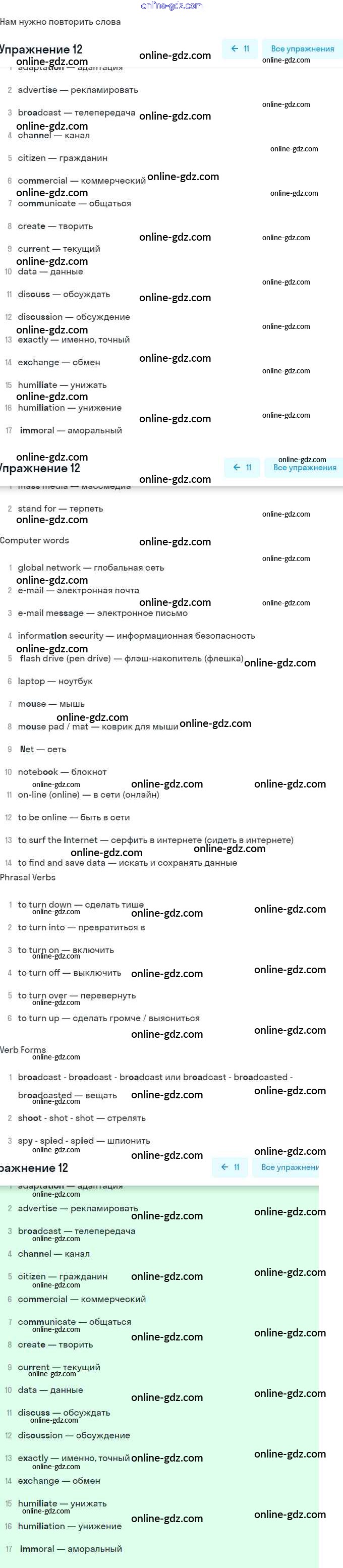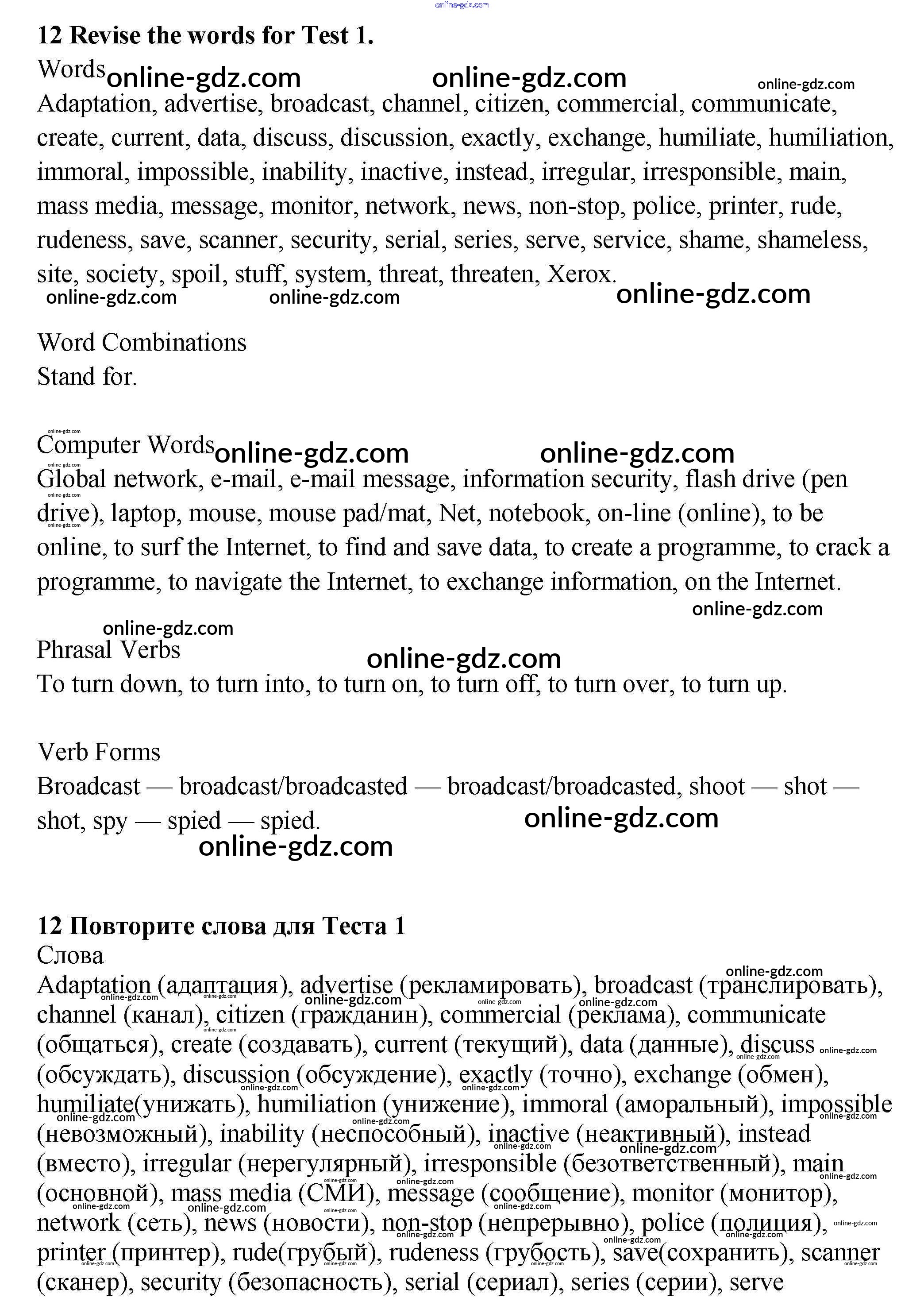 Готовые домашние задания по Английскому языку за 9 класс Учебник Афанасьева, Михеева Rainbow 2017 - Step 9 Unit 1. Mass Media: Radio, Television, the Internet 12