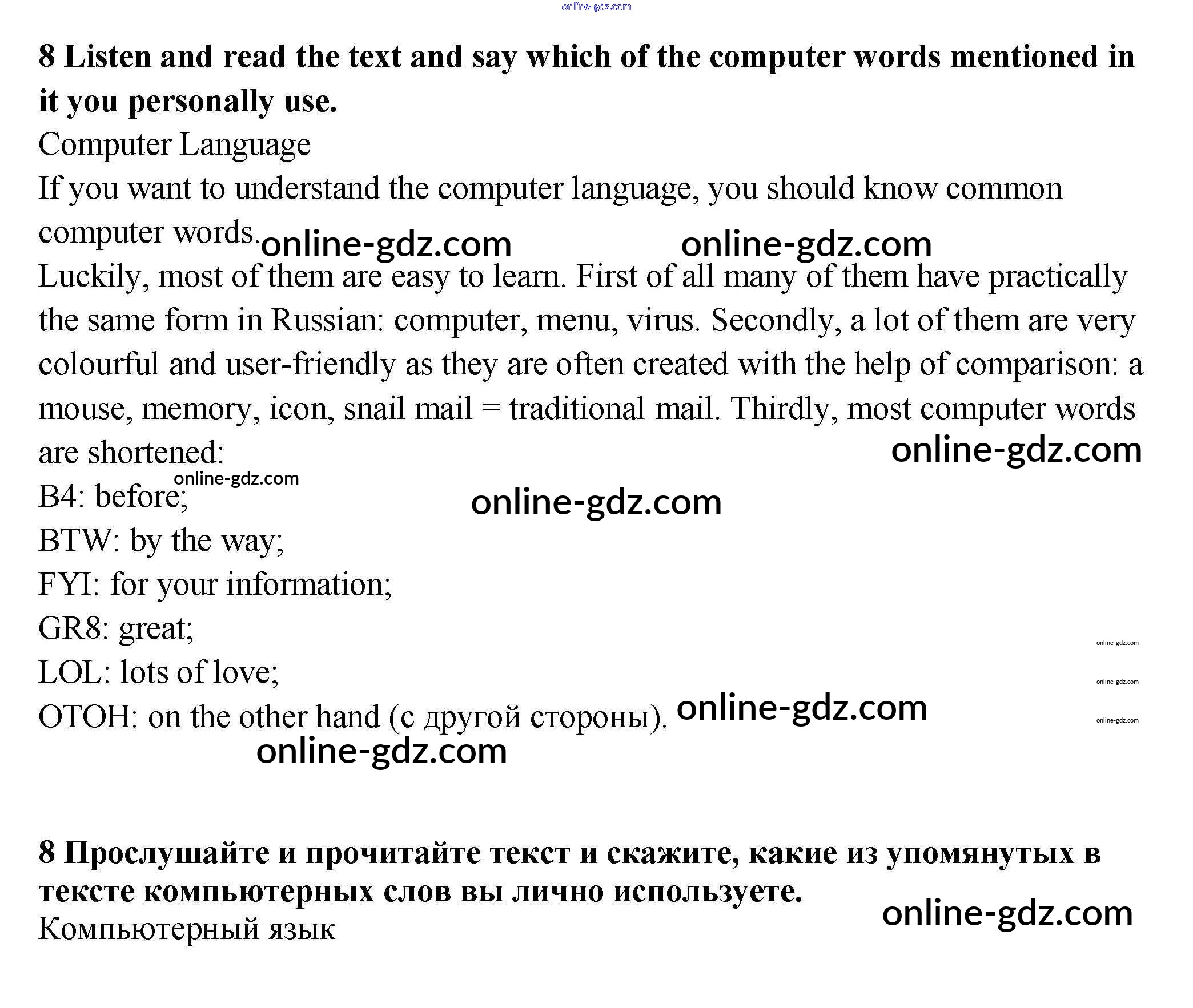 Готовые домашние задания по Английскому языку за 9 класс Учебник Афанасьева, Михеева Rainbow 2017 - Step 9 Unit 1. Mass Media: Radio, Television, the Internet 8