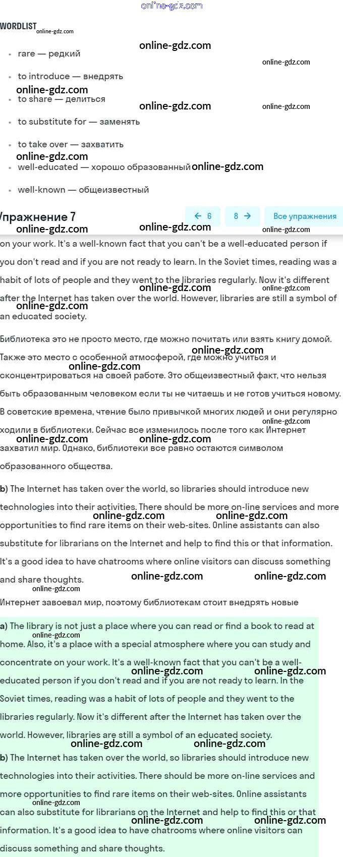 Готовые домашние задания по Английскому языку за 9 класс Учебник Афанасьева, Михеева Rainbow 2017 - Step 2 Unit 2. The Printed Page: Books, Magazines, Newspapers 7