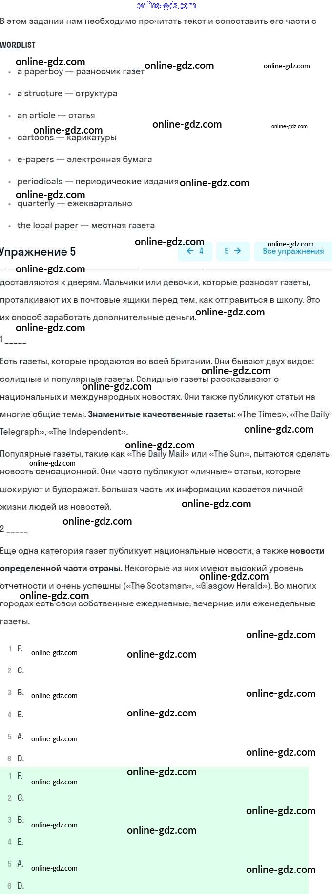 Готовые домашние задания по Английскому языку за 9 класс Учебник Афанасьева, Михеева Rainbow 2017 - Step 4 Unit 2. The Printed Page: Books, Magazines, Newspapers 5
