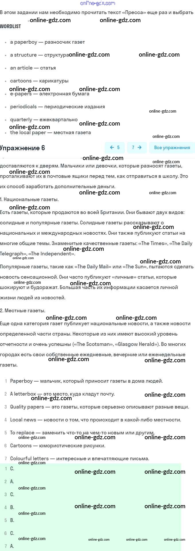 Готовые домашние задания по Английскому языку за 9 класс Учебник Афанасьева, Михеева Rainbow 2017 - Step 4 Unit 2. The Printed Page: Books, Magazines, Newspapers 6