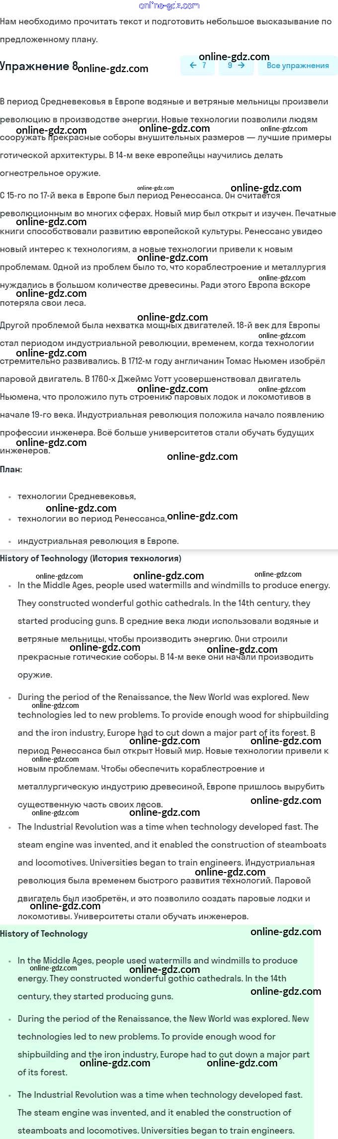 Готовые домашние задания по Английскому языку за 9 класс Учебник Афанасьева, Михеева Rainbow 2017 - Step 5 Unit 3. Science and Technology 8