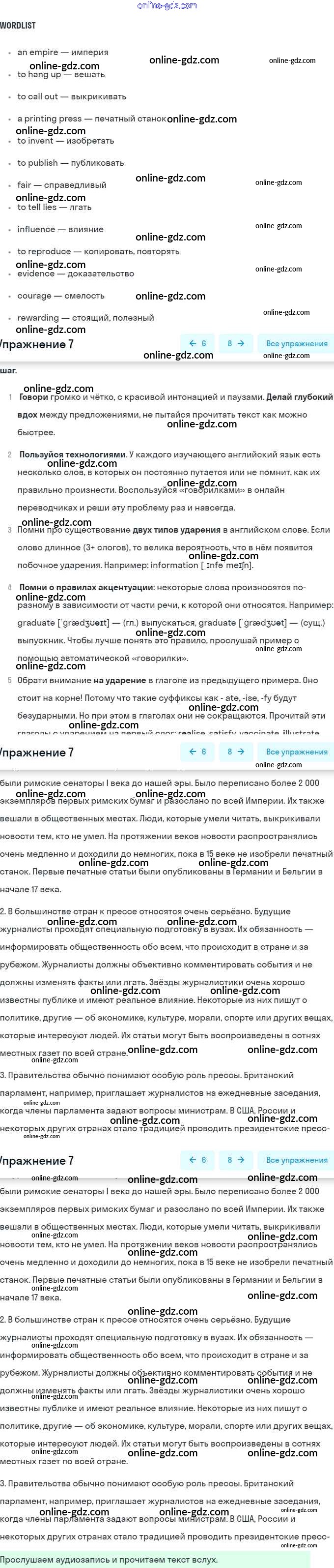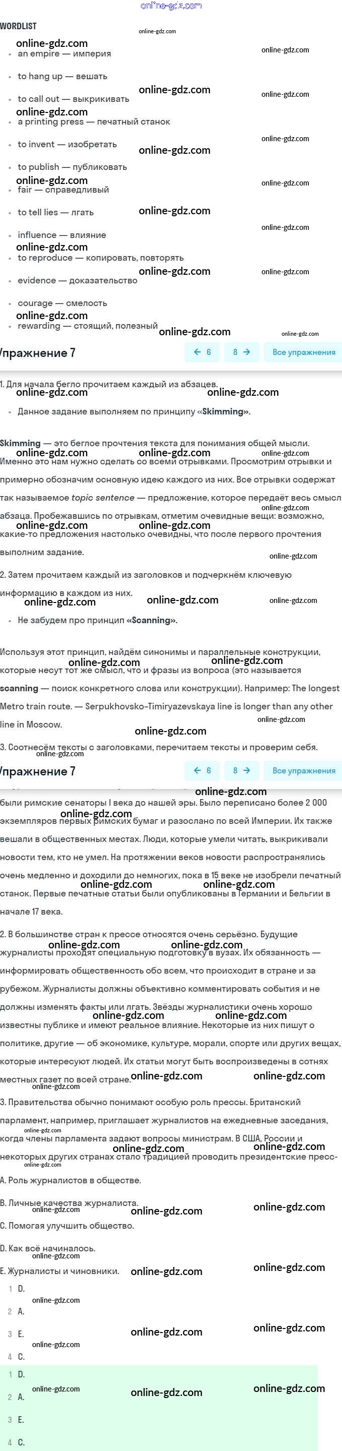 Готовые домашние задания по Английскому языку за 9 класс Учебник Афанасьева, Михеева Rainbow 2017 - Step 7 Unit 2. The Printed Page: Books, Magazines, Newspapers 7