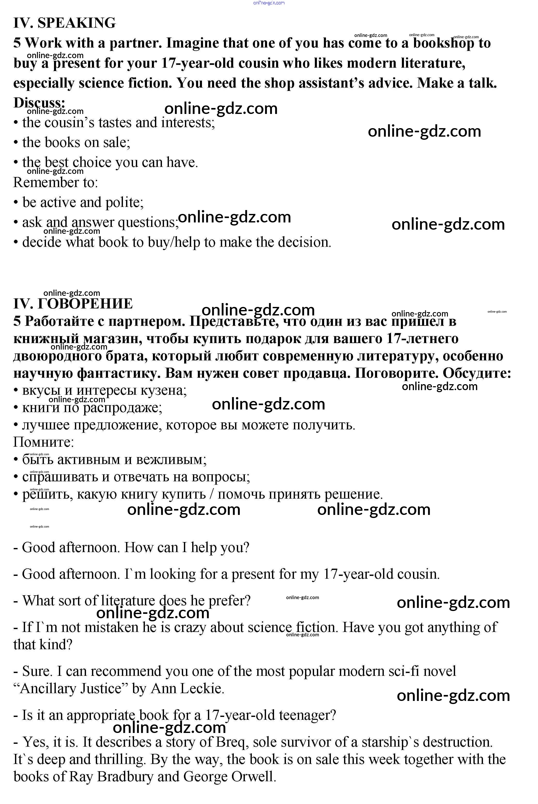 Готовые домашние задания по Английскому языку за 9 класс Учебник Афанасьева, Михеева Rainbow 2017 - Step 10 Unit 2. The Printed Page: Books, Magazines, Newspapers 5