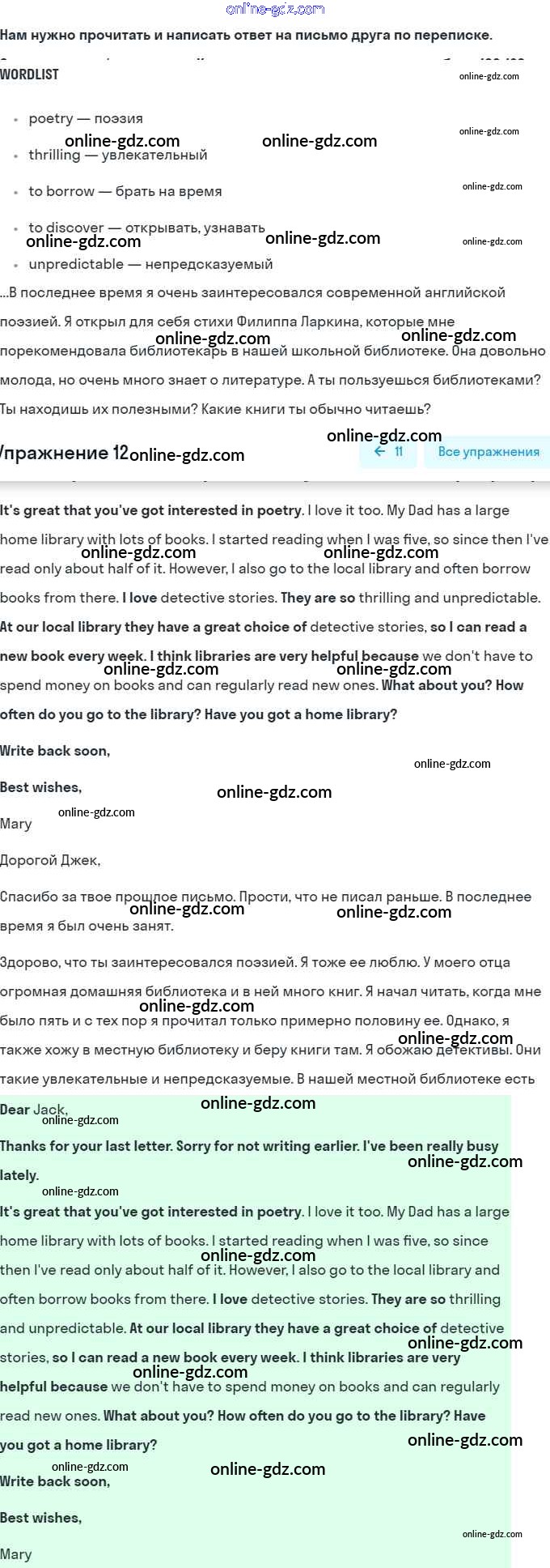 Готовые домашние задания по Английскому языку за 9 класс Учебник Афанасьева, Михеева Rainbow 2017 - Step 2 Unit 2. The Printed Page: Books, Magazines, Newspapers 12