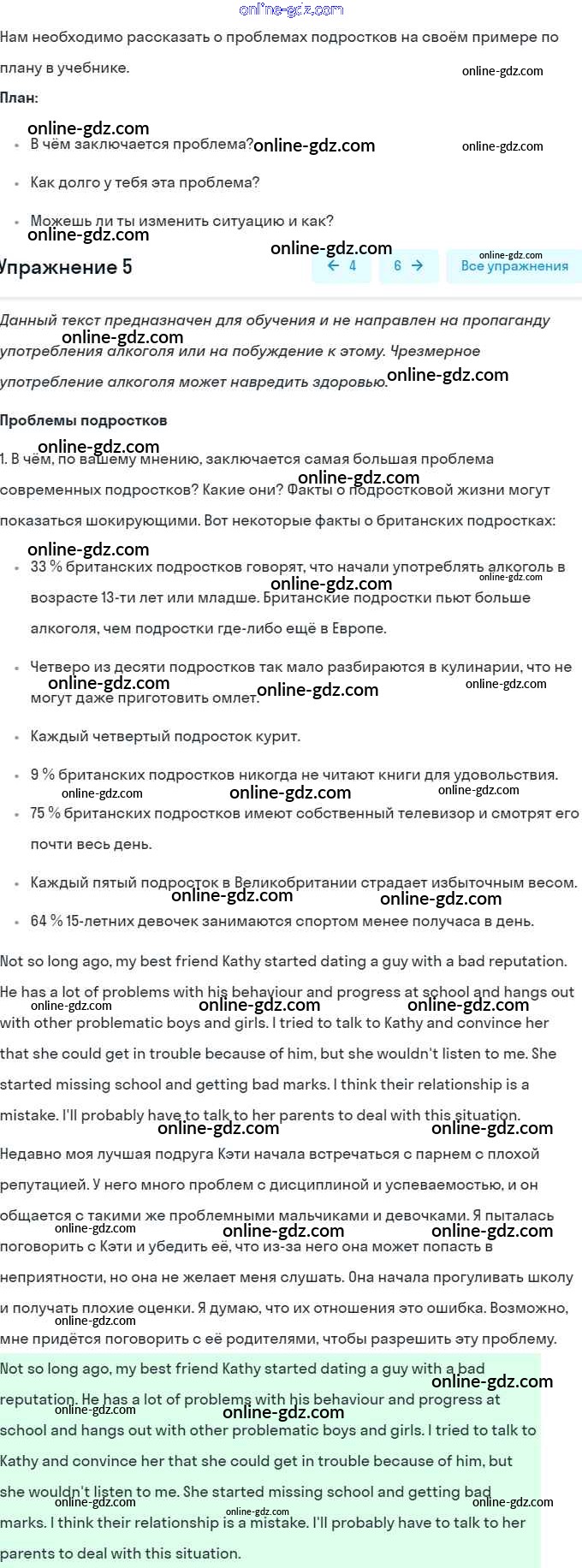 Готовые домашние задания по Английскому языку за 9 класс Учебник Афанасьева, Михеева Rainbow 2017 - Step 10 Unit 4. Being a Teenager 5