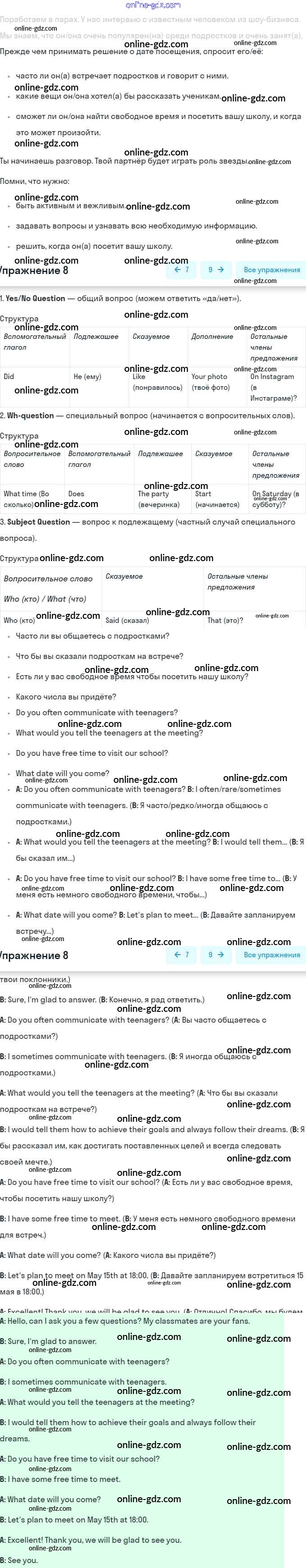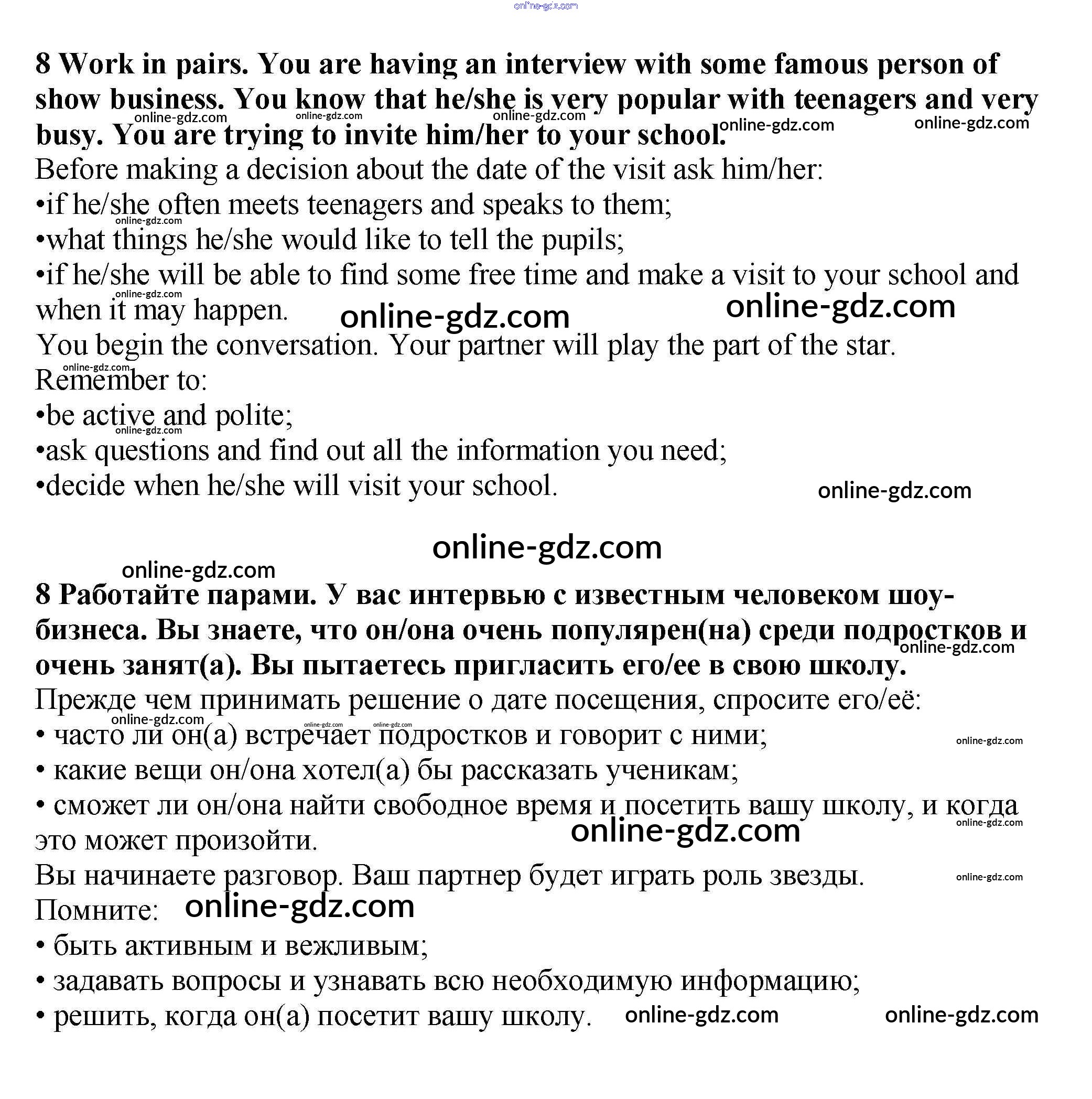 Готовые домашние задания по Английскому языку за 9 класс Учебник Афанасьева, Михеева Rainbow 2017 - Step 5 Unit 4. Being a Teenager 8