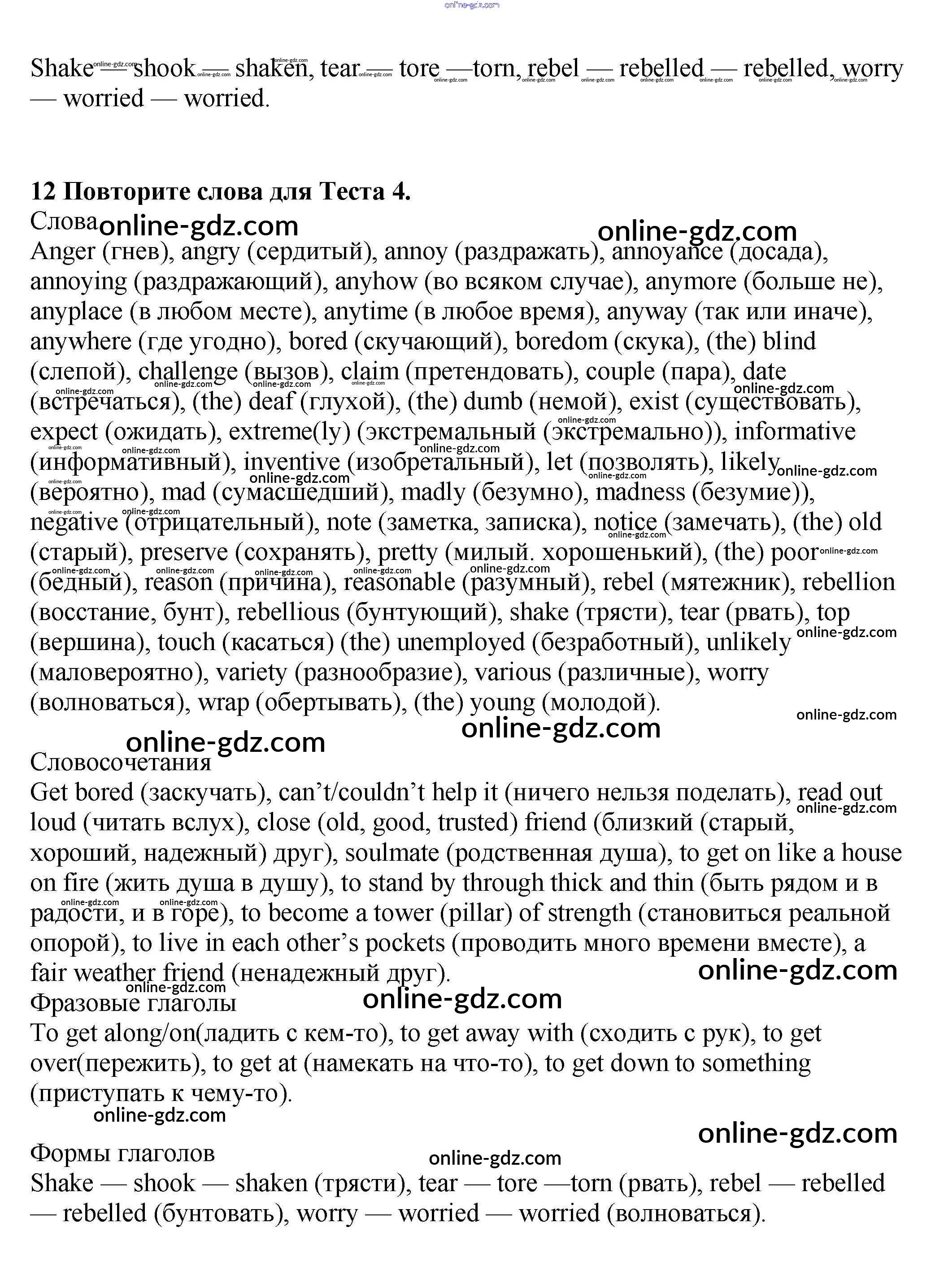 Готовые домашние задания по Английскому языку за 9 класс Учебник Афанасьева, Михеева Rainbow 2017 - Step 9 Unit 4. Being a Teenager 12