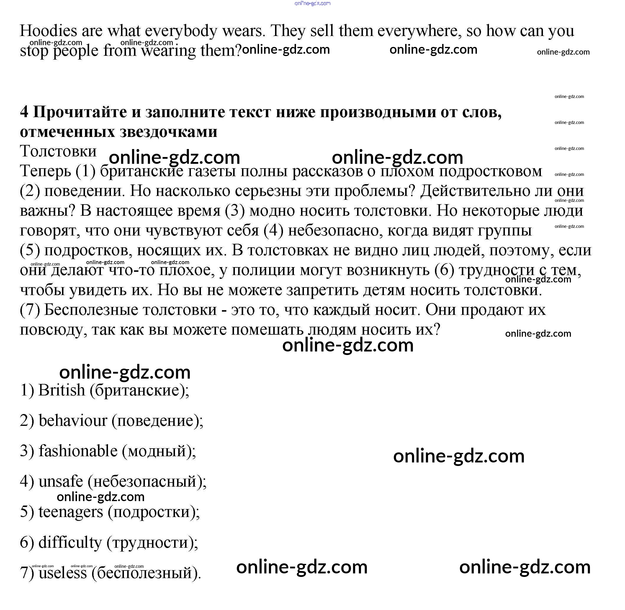 Готовые домашние задания по Английскому языку за 9 класс Учебник Афанасьева, Михеева Rainbow 2017 - Step 9 Unit 4. Being a Teenager 4