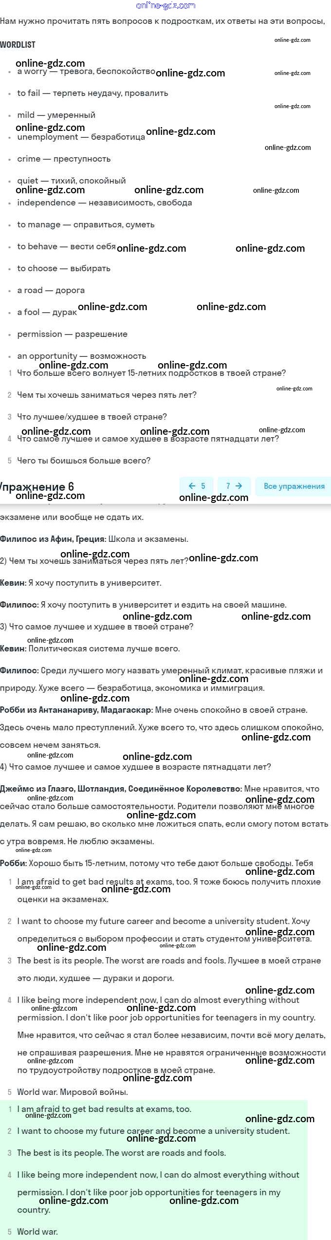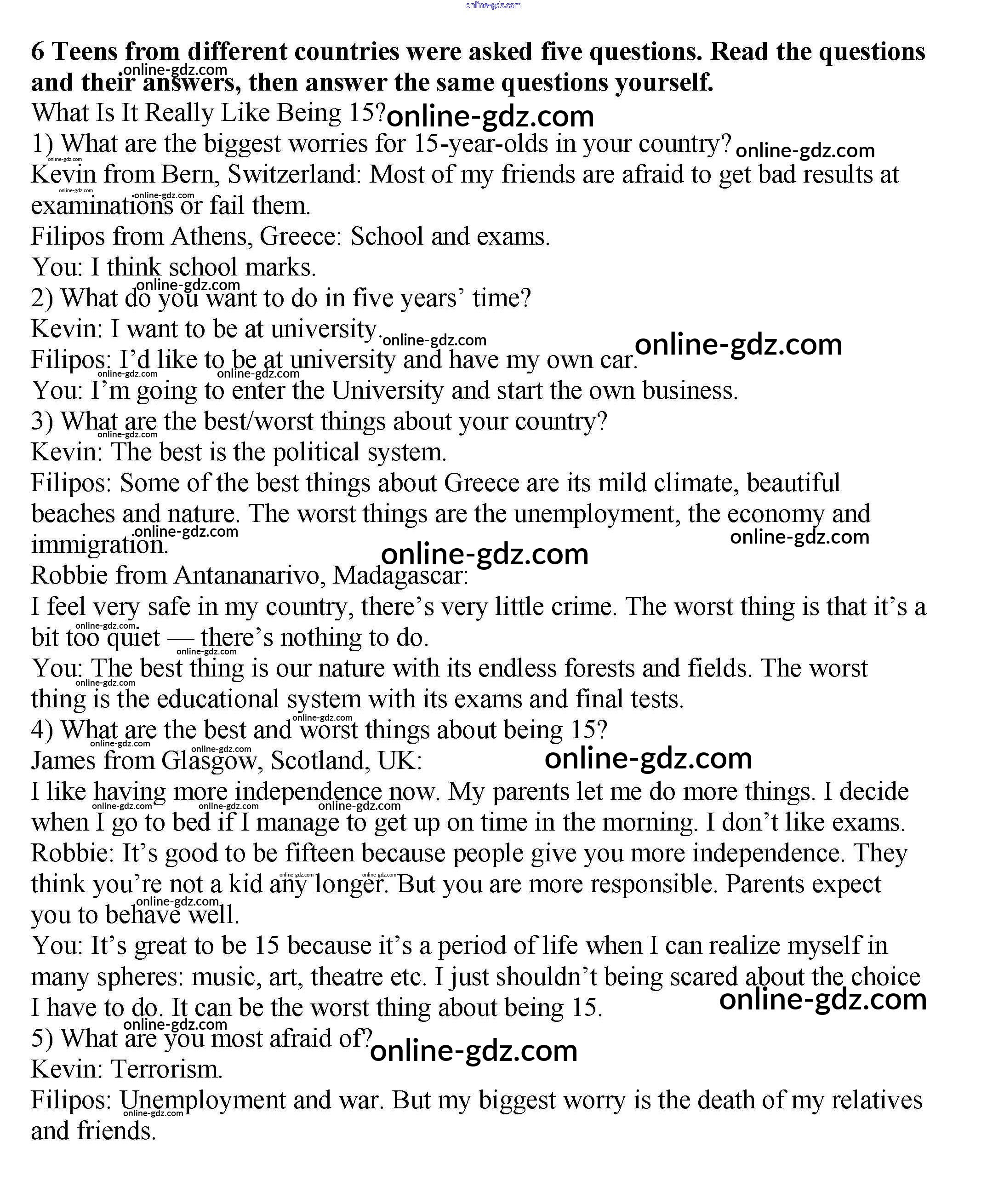 Готовые домашние задания по Английскому языку за 9 класс Учебник Афанасьева, Михеева Rainbow 2017 - Step 9 Unit 4. Being a Teenager 6
