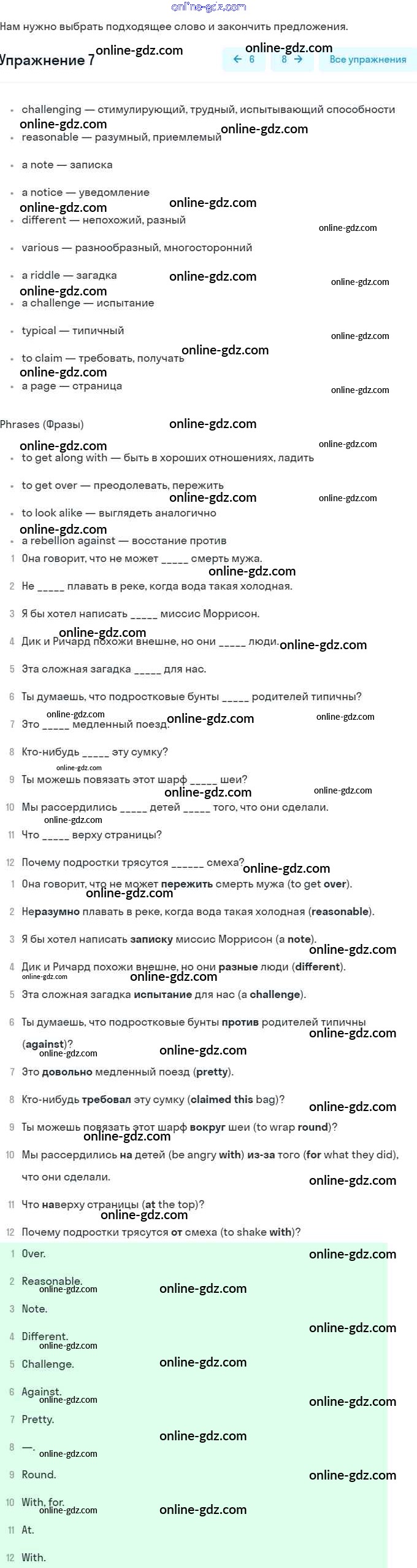 Готовые домашние задания по Английскому языку за 9 класс Учебник Афанасьева, Михеева Rainbow 2017 - Step 9 Unit 4. Being a Teenager 7