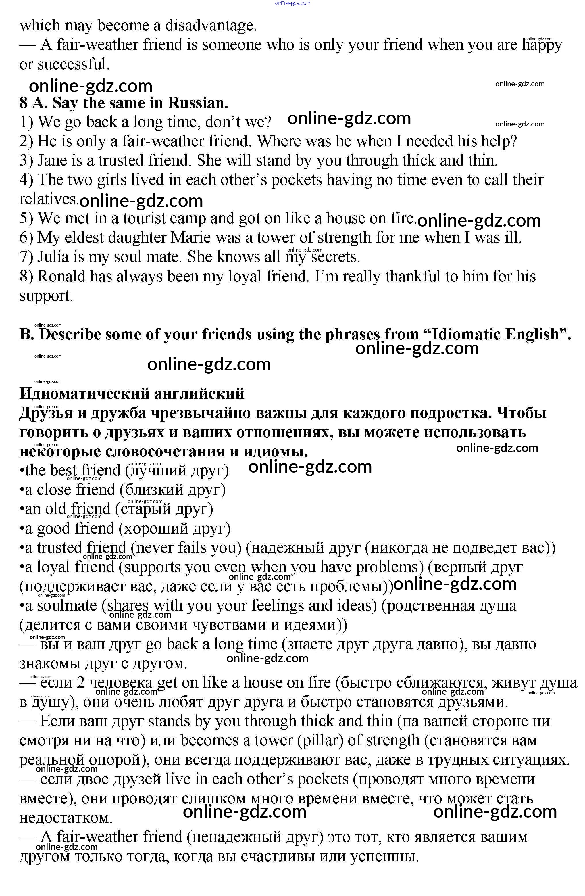 Готовые домашние задания по Английскому языку за 9 класс Учебник Афанасьева, Михеева Rainbow 2017 - Step 9 Unit 4. Being a Teenager 8
