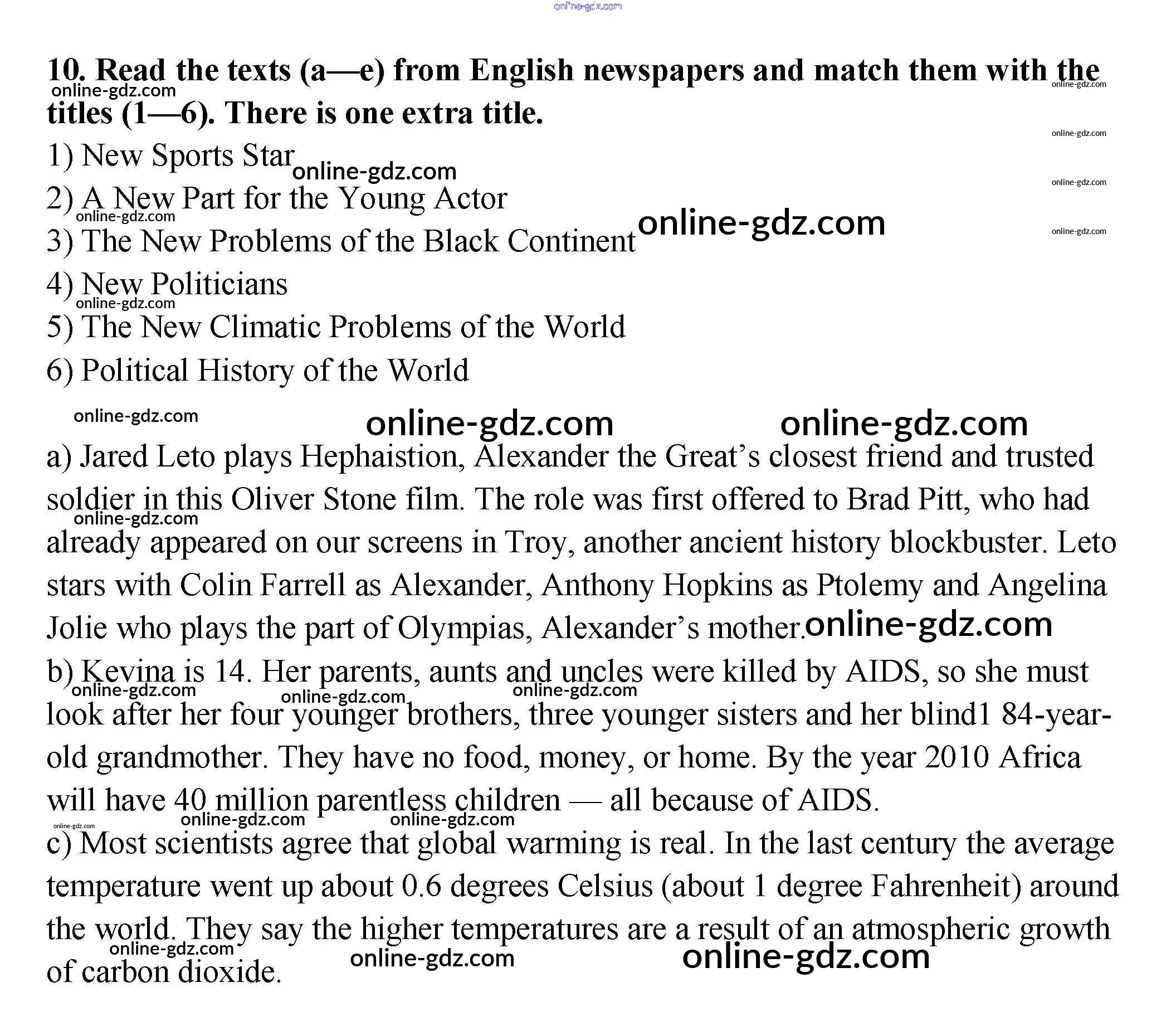 Готовые домашние задания по Английскому языку за 9 класс Учебник Афанасьева, Михеева Новый курс 2014 - Секция 1 Unit 1 10