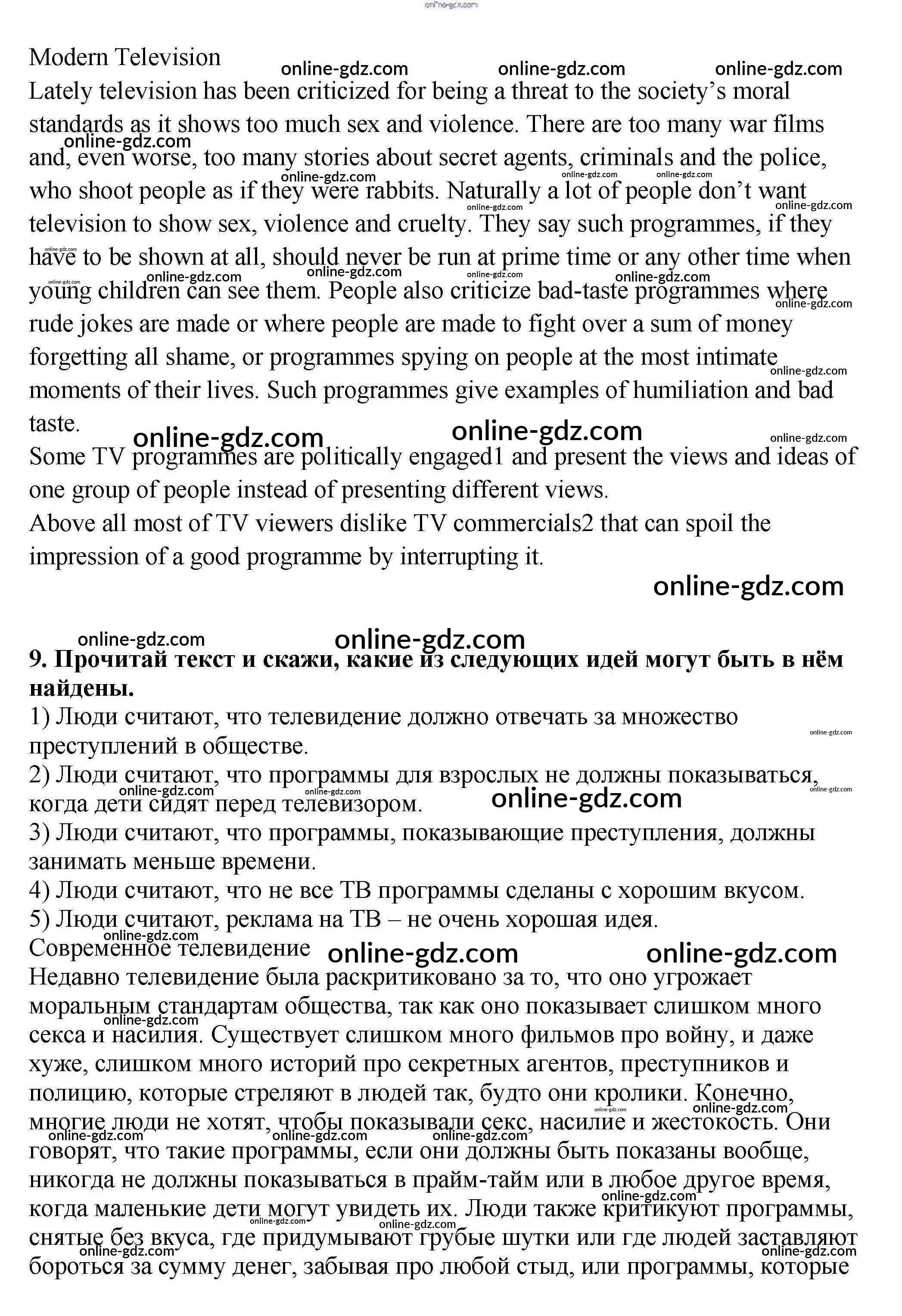 Готовые домашние задания по Английскому языку за 9 класс Учебник Афанасьева, Михеева Новый курс 2014 - Секция 5 Unit 1 9