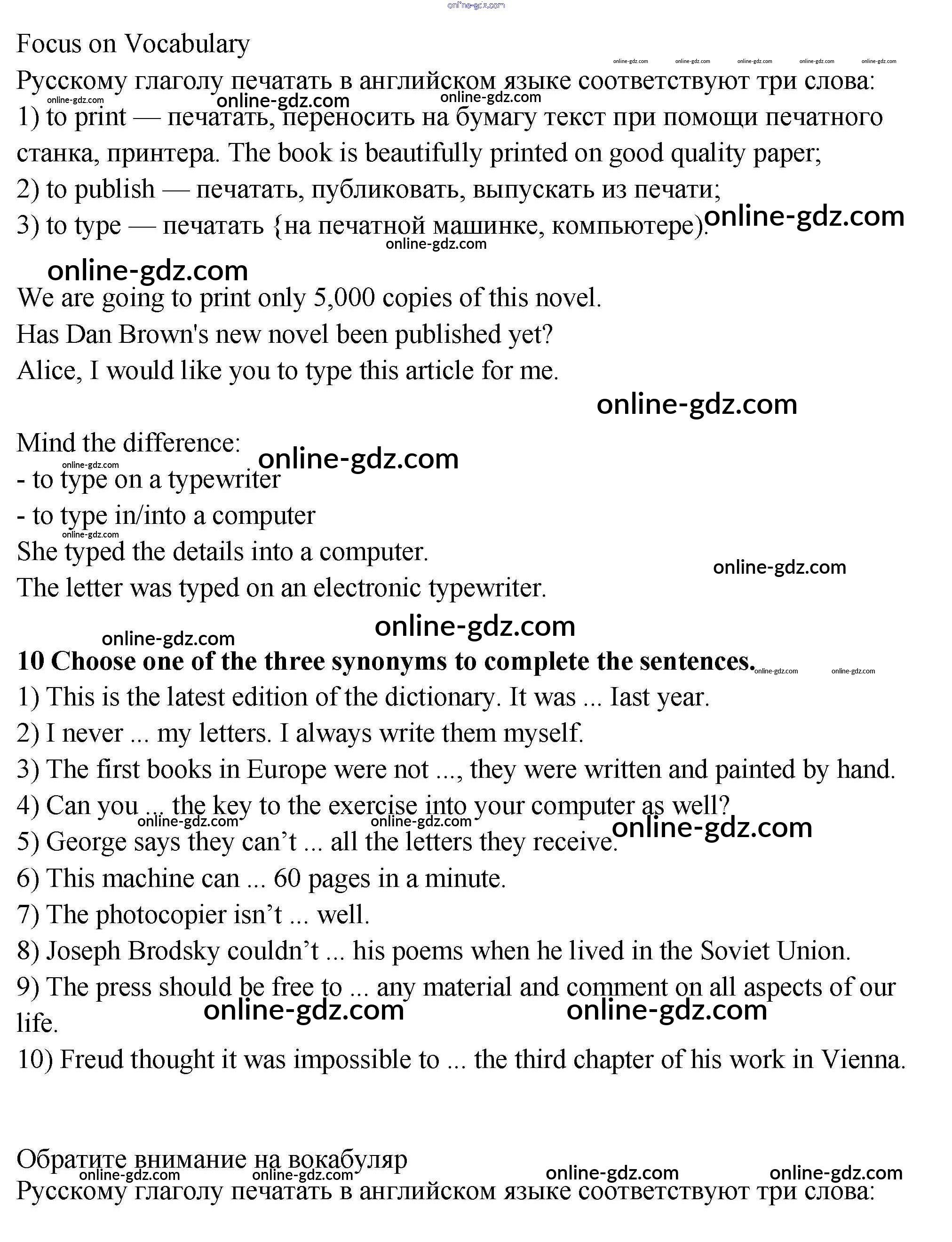 Готовые домашние задания по Английскому языку за 9 класс Учебник Афанасьева, Михеева Новый курс 2014 - Секция 3 Unit 2 10