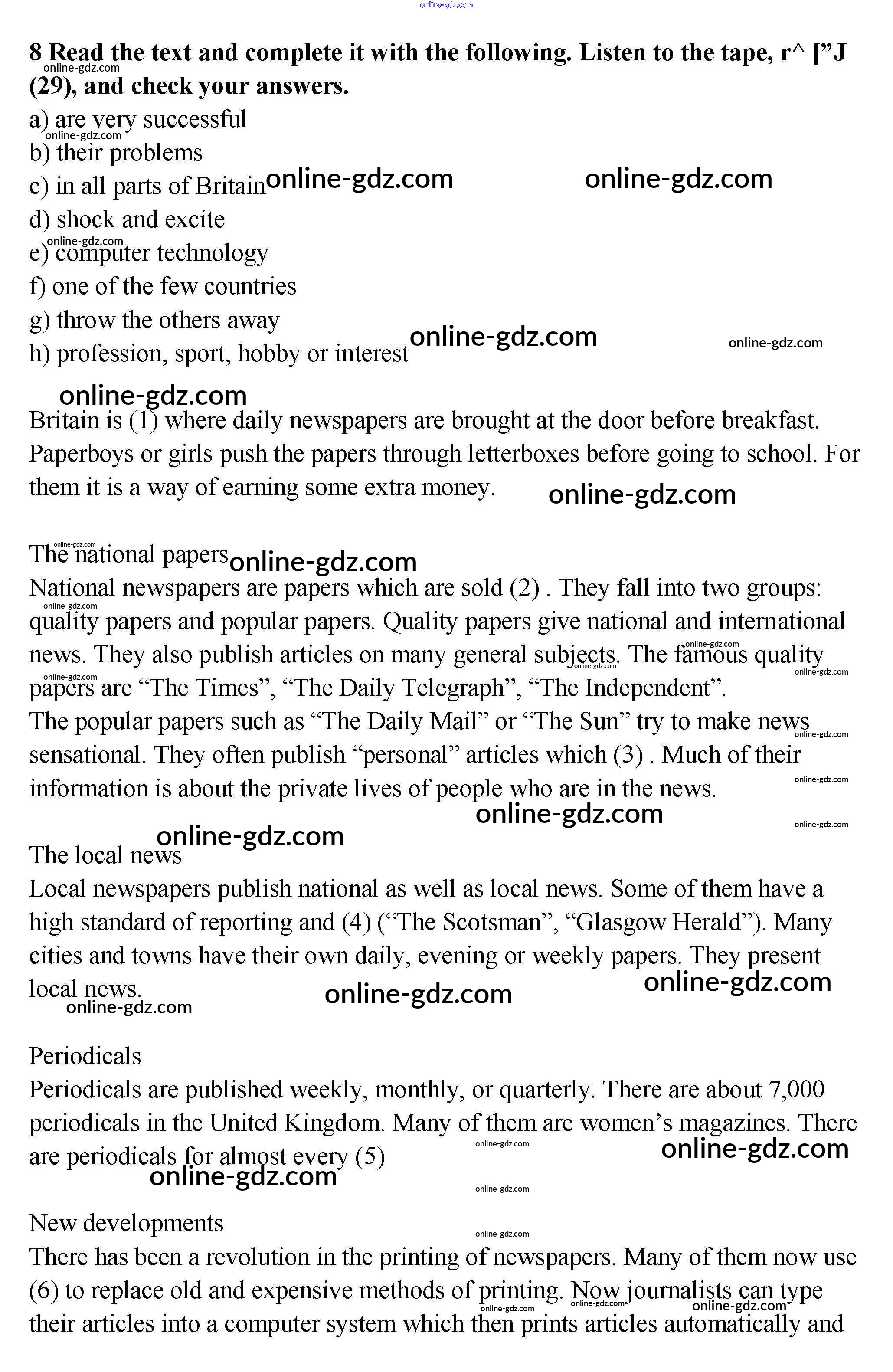Готовые домашние задания по Английскому языку за 9 класс Учебник Афанасьева, Михеева Новый курс 2014 - Секция 3 Unit 2 8