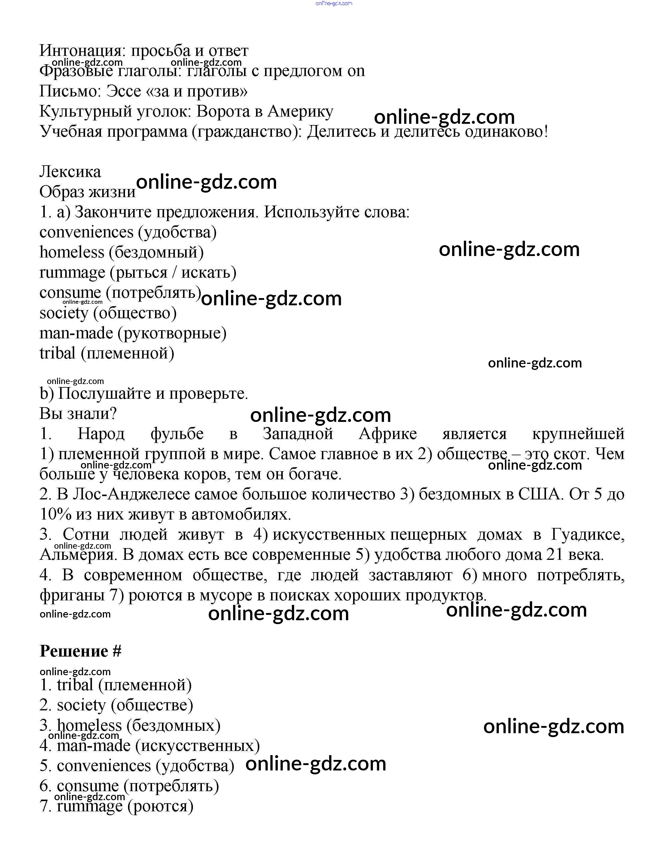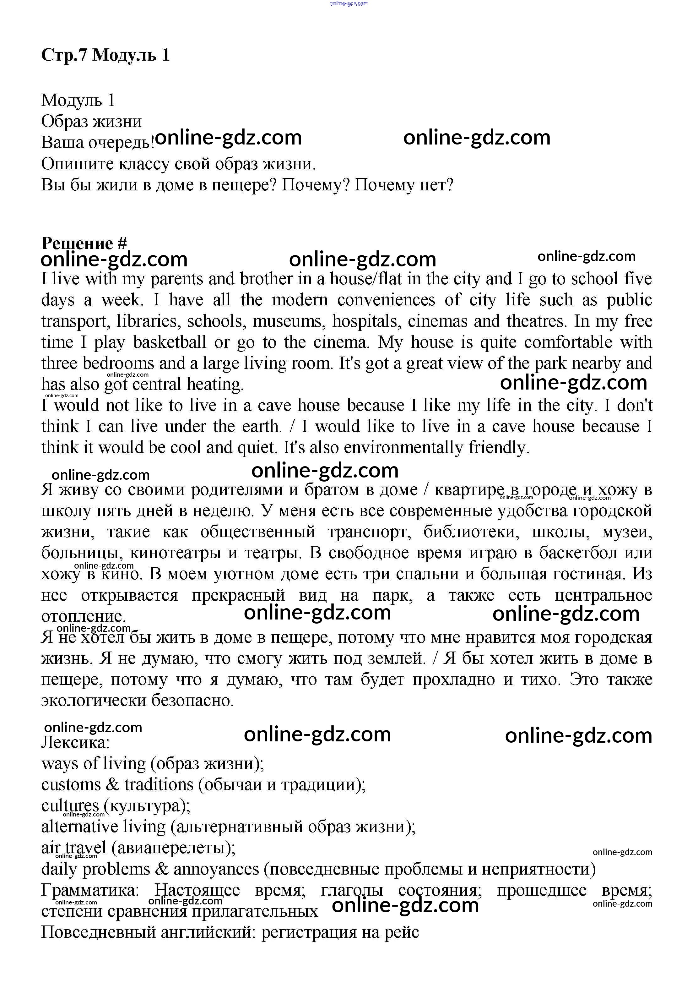 Готовые домашние задания по Английскому языку за 9 класс Учебник Баранова, Дули Starlight Углубленный уровень 2017 - Module 1. Lifestyles стр.7