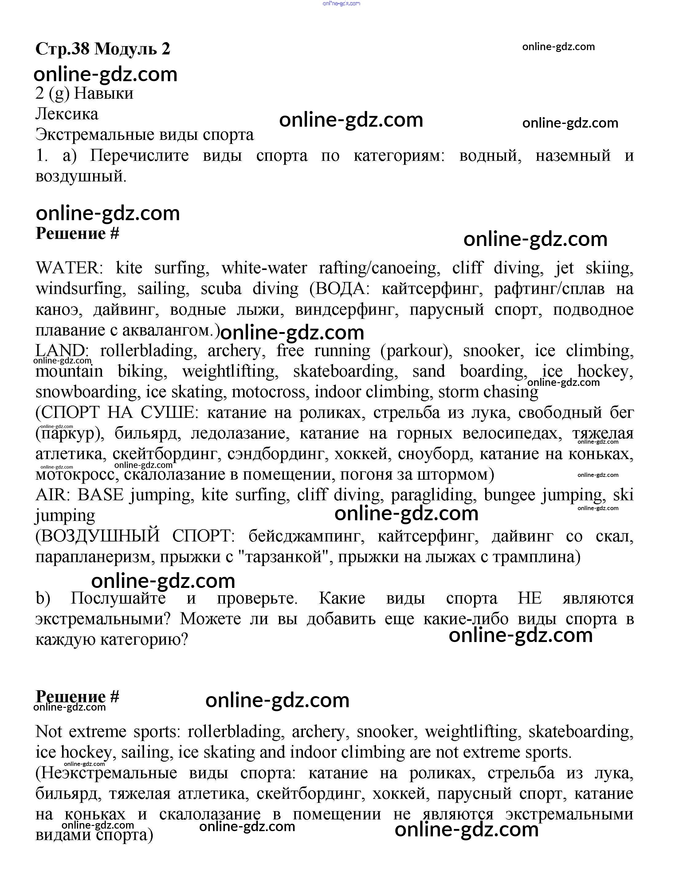 Готовые домашние задания по Английскому языку за 9 класс Учебник Баранова, Дули Starlight Углубленный уровень 2017 - Module 2. Extreme facts стр.38