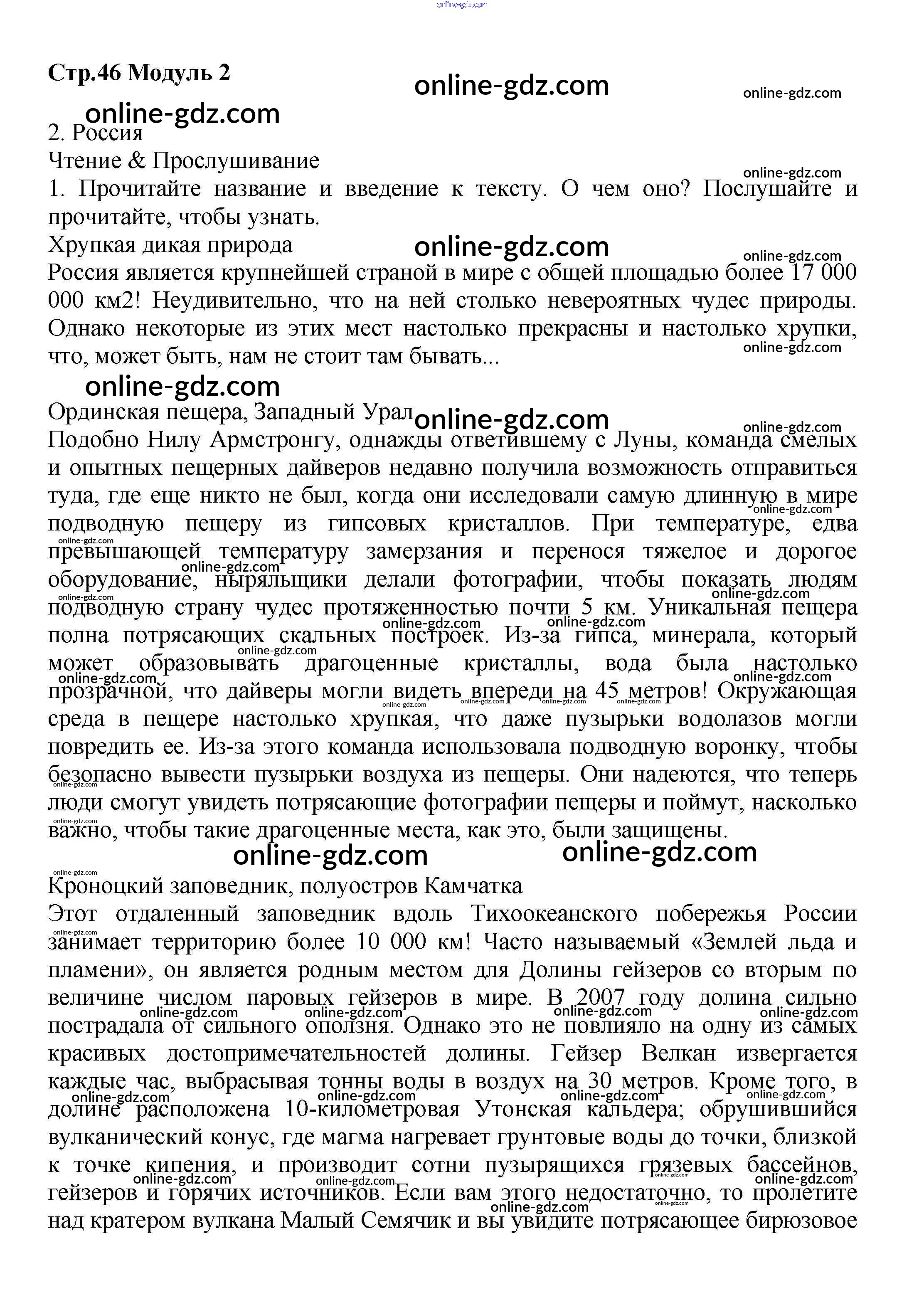 Готовые домашние задания по Английскому языку за 9 класс Учебник Баранова, Дули Starlight Углубленный уровень 2017 - Module 2. Extreme facts стр.46