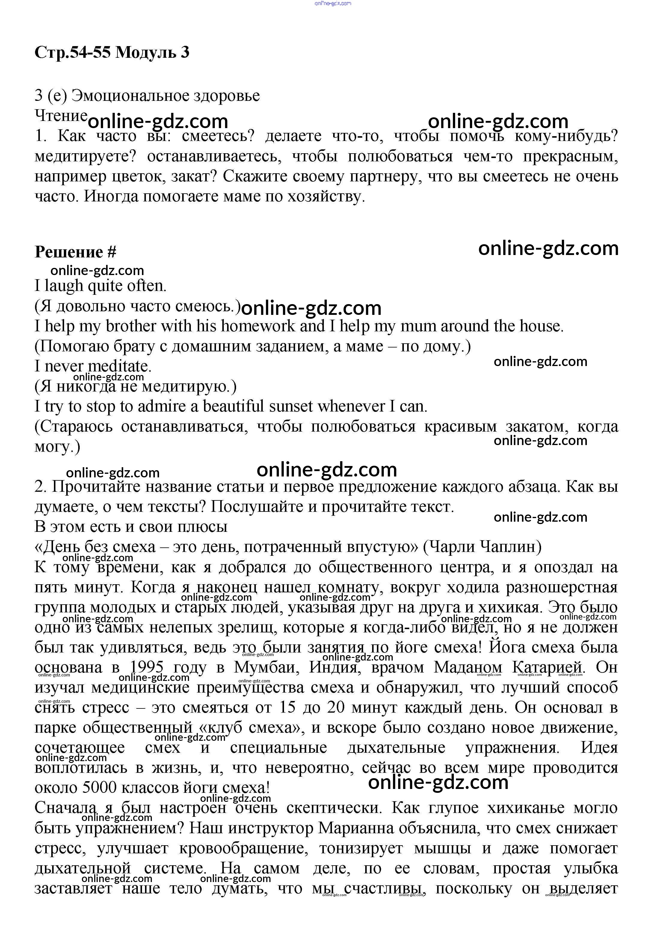 Готовые домашние задания по Английскому языку за 9 класс Учебник Баранова, Дули Starlight Углубленный уровень 2017 - Module 3. Body and Soul стр.54-55