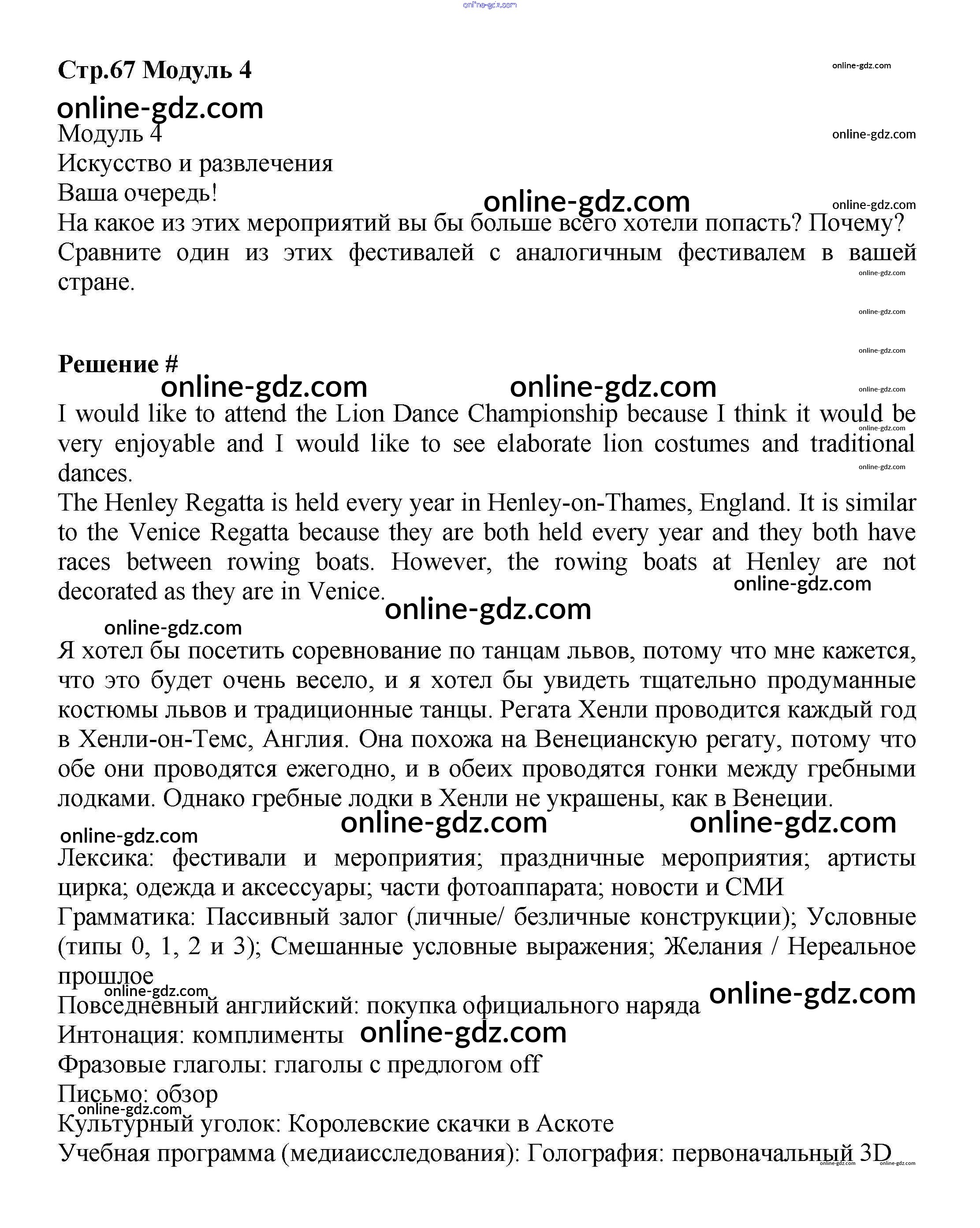 Готовые домашние задания по Английскому языку за 9 класс Учебник Баранова, Дули Starlight Углубленный уровень 2017 - Module 4. Art & Entertainment стр.67
